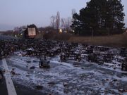 Balesethez riasztották a székesfehérvári tűzoltókat csütörtökön délután. Az M7-es autópályán, a Budapest felé vezető oldalon, a szabadbattyáni felhajtónál egy rekeszekben üveges söröket szállító Scania kamion rakományának körülbelül a fele az útra ömlött. A rekeszek és a törött üvegek az autópálya mindkét sávját, valamint a kapaszkodósávot beterítették. Személyi sérülés nem történt.