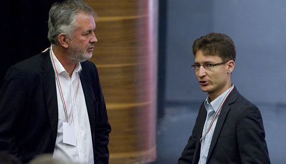A képen Páva Zsolt Pécs polgármestere és Cser-Palkovics András Székesfehérvár polgármestere a miniszterelnök bejelentése után.