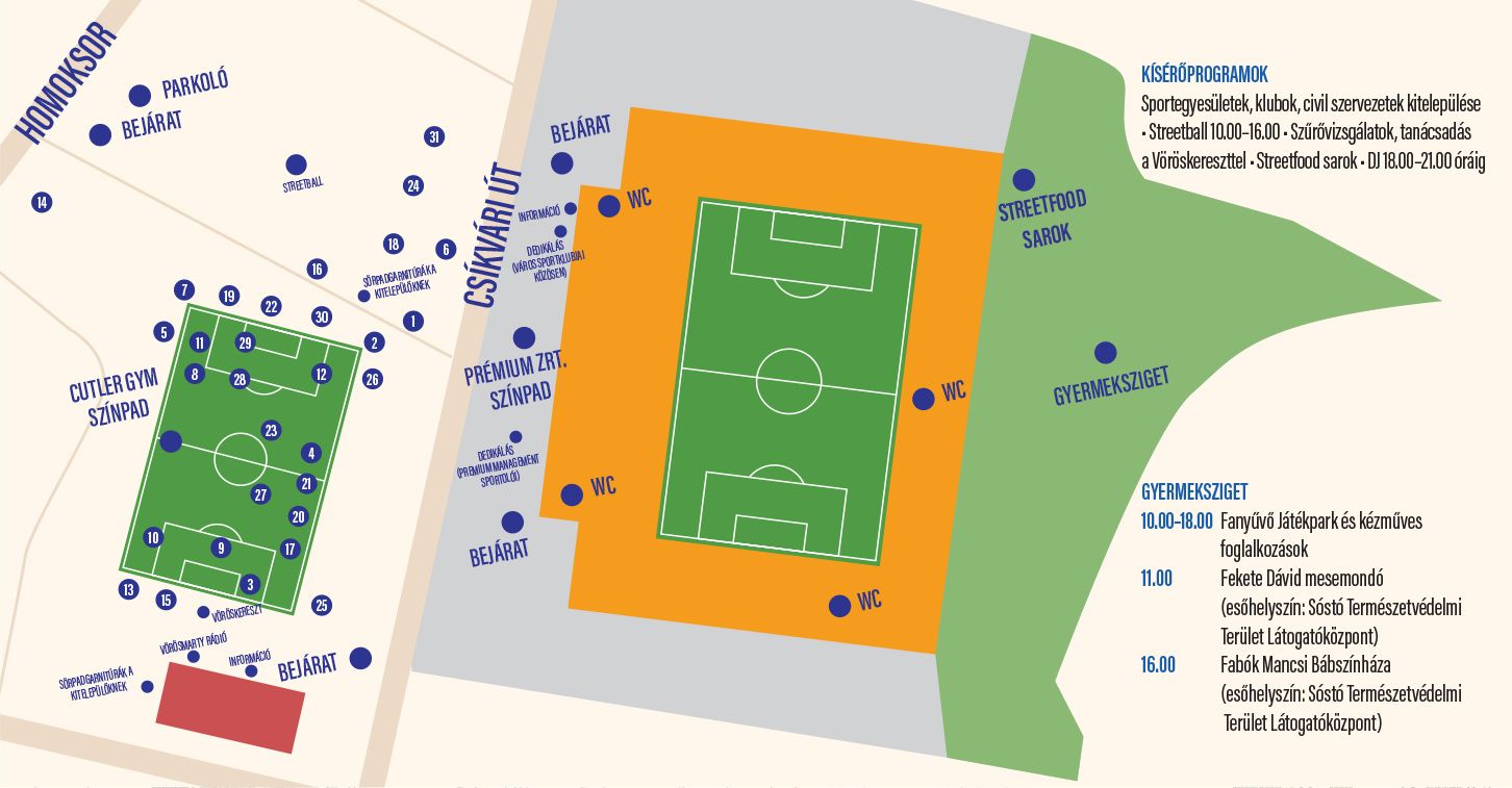 A sportegyesületek az egész napos kitelepülés mellett színpadi bemutatókkal is igyekeznek felhívni magukra a figyelmet: 11 órától folyamatosan váltják majd egymást a Prémium Zrt. színpadon. Idén is lesz streetball bajnokság, amelyet a parkoló területén rendeznek meg, az eredményhirdetést a bemutatók között 16.30 órakor tartják.