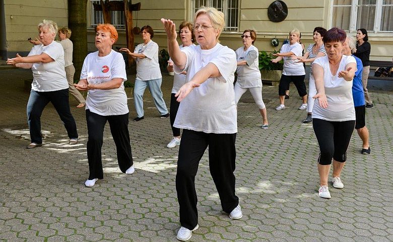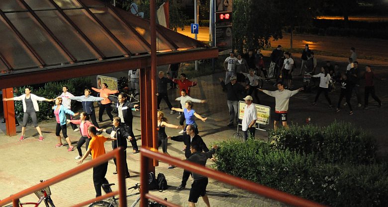 A Szent István Művelődési Ház udvarán a Meridián 1-2-3 torna rendszeres gyakorlói mutatták meg, milyen ez a mozgásforma, amely a kínai orvoslásból kiindulva a test minden fontos pontját stimulálja.