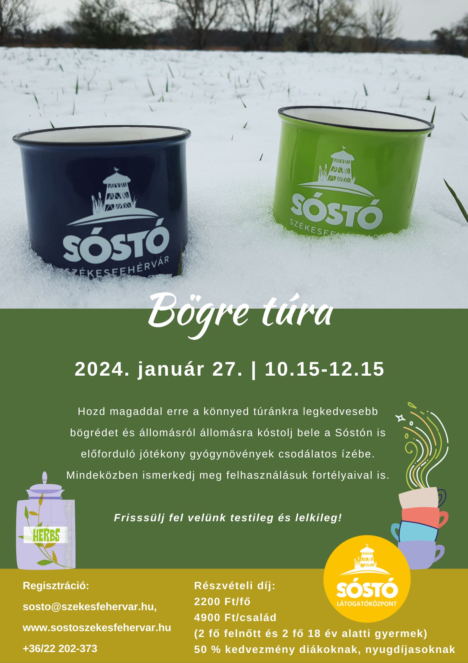 Január 27-én, szombaton 10.15 órakor a Sóstó Látogatóközponttól újabb bögretúrára indulhatunk, hogy megismerjük a természetvédelmi terület egyedülálló értékeit, közben pedig belekóstolhassunk a Sóstón is előforduló jótékony gyógynövények csodálatos ízébe.