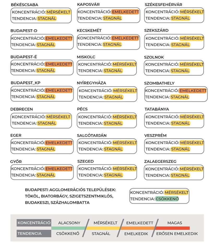 A Nemzeti Népegészségügyi Központ friss adatai szerint vizsgált városok többségében stagnáló tendencia jellemző, enyhe csökkenés egyedül a vizsgált Budapest környéki települések közös mintájában volt tapasztalható.