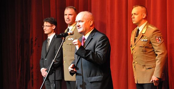 A katonákat és a koronázó várost is köszöntötte Hende Csaba honvédelmi miniszter, aki kiemelte, hogy Székesfehérváron működik az ország Összhaderőnemi Parancsnoksága, így nincs Fehérvárnál fontosabb város a honvédség szempontjából. Hatalmas megtiszteltetés, hogy ennyire megbecsüli a Fehérvár a katonáit és volt katonáit is. Ebben Cser-Palkovics András polgármesternek és Vargha Tamásnak a megyei közgyűlés elnökének és az Országgyűlés Honvédelmi és rendészeti bizottság tagjának nagy szerepük van, amiért hálával tartozunk nekik - mondta Hende Csaba.