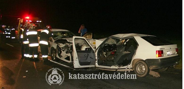 Négy felnőtt és egy csecsemő sérült meg a 811-es úton Székesfehérvár és Pátka között, ahol két autó frontálisan ütközött össze péntek este. A Fejér Megyei Katasztrófavédelmi Igazgatóság szóvivője, Farkas-Bozsik Gábor elmondta, a csecsemő könnyű, a négy felnőtt pedig súlyos sérülést szenvedett. Az egyik utast a tűzoltók szabadították ki a roncsból.