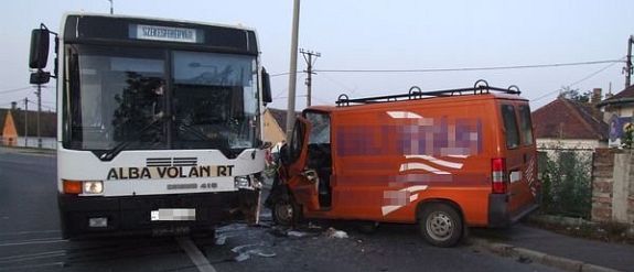 Közlekedési baleset történt ma kora reggel Székesfehérváron, a Balatoni úton, ahol egy autóbusz és egy furgon ütközött. Egy sérült a roncsok közé szorult. A Balatoni úton a Horvát István utca kereszteződése felől közlekedő helyközi autóbusz a bal elejével összeütközött a szemből érkező furgonnal, melyben két férfi ült.