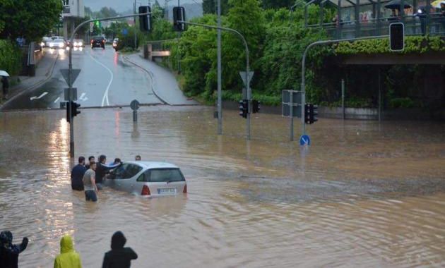 A baden-württembergi Braunsbach településen a heves esőzések miatt egy folyó kilépett a medréből és elárasztotta a 900 fős falut. Az áradás miatt több ház beomlott, és a sártenger autókat sodort magával. A helyszínen 150 embert - tűzoltót, a vöröskereszt munkatársait és technikai segítőket - vetettek be a mentési munkálatokra. Az áradások és földcsuszamlások miatt több térségben akadozik a közlekedés, és több tucat ház pincéjét árasztotta el a hirtelen jött nagy mennyiségű csapadék.