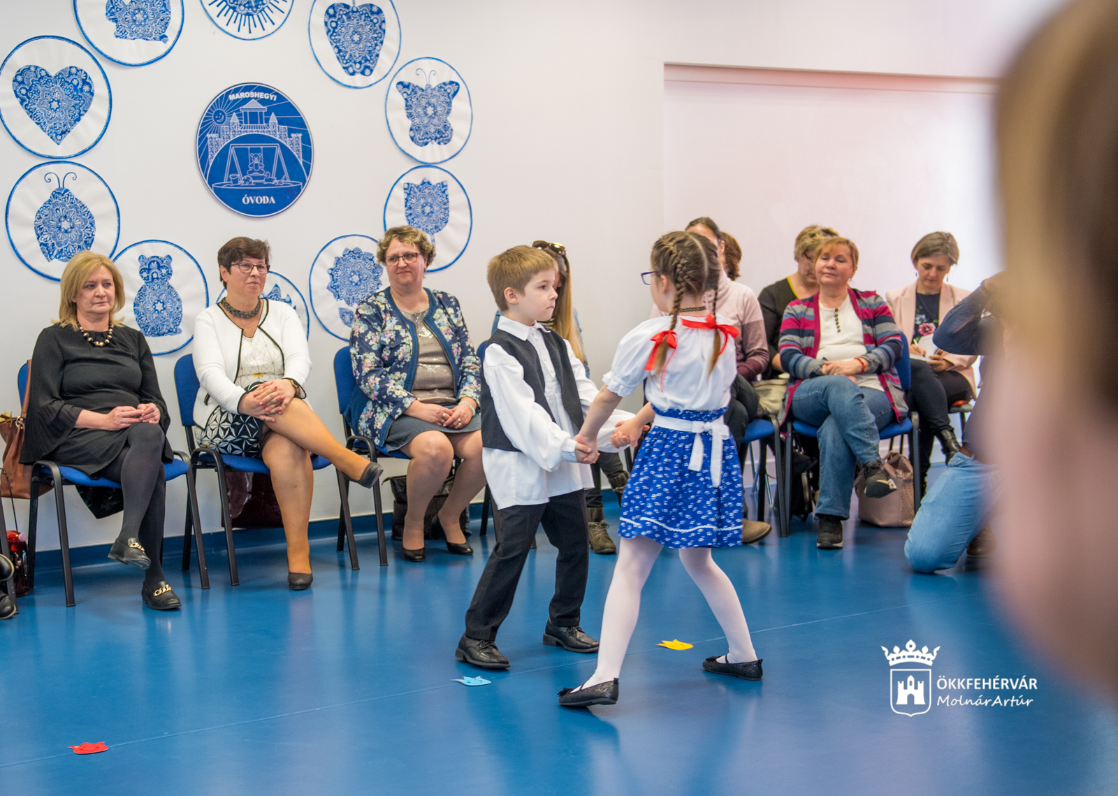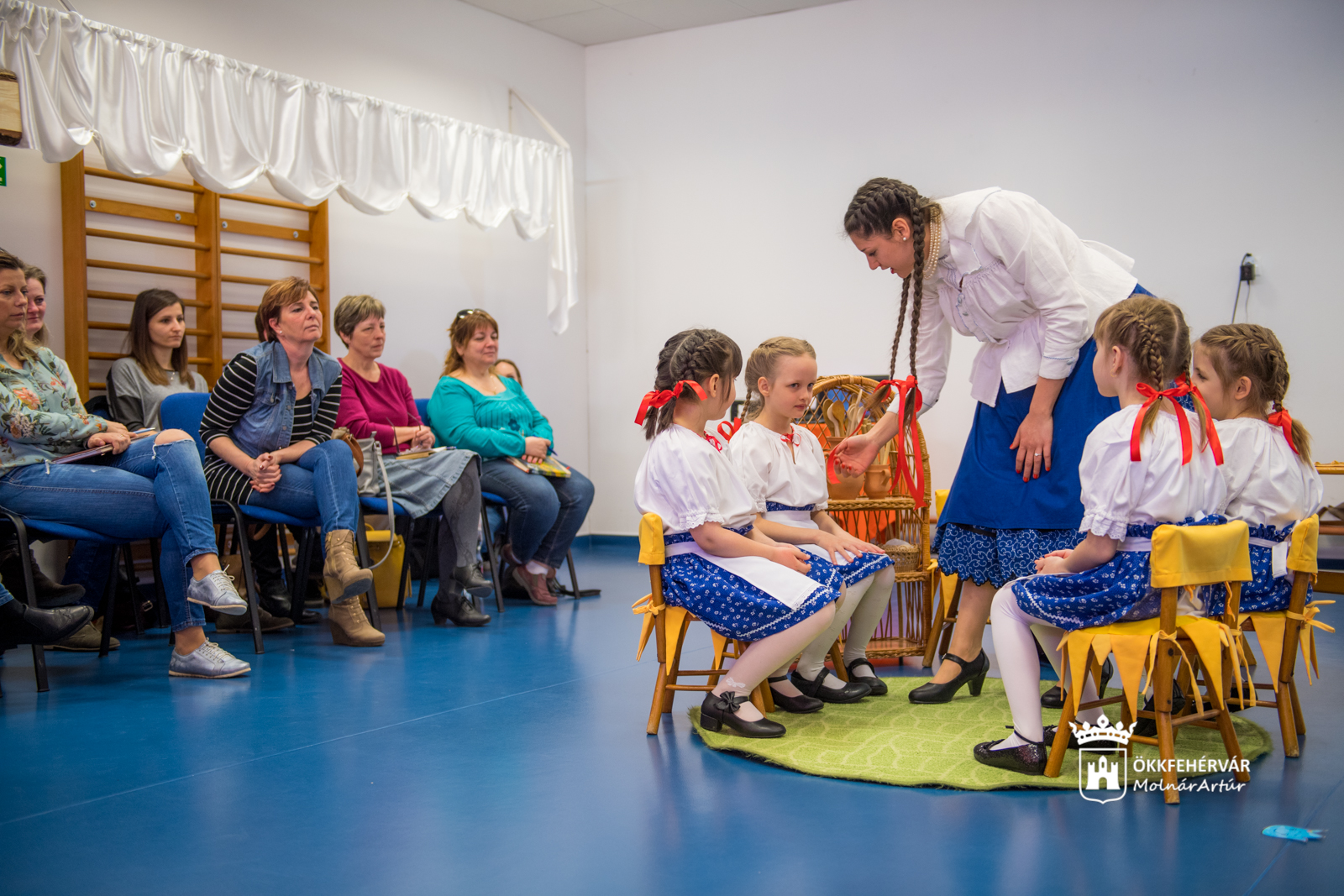 A konferenciához népzenés dalos játékkal és tánccal kapcsolódtak a gyerekek, illetve Baté Viktória óvodapedagógus mutatott be egy a ritmusérzéket fejlesztő mikrocsoportos foglalkozást a Napocska csoportba járó négy kislány részvételével.