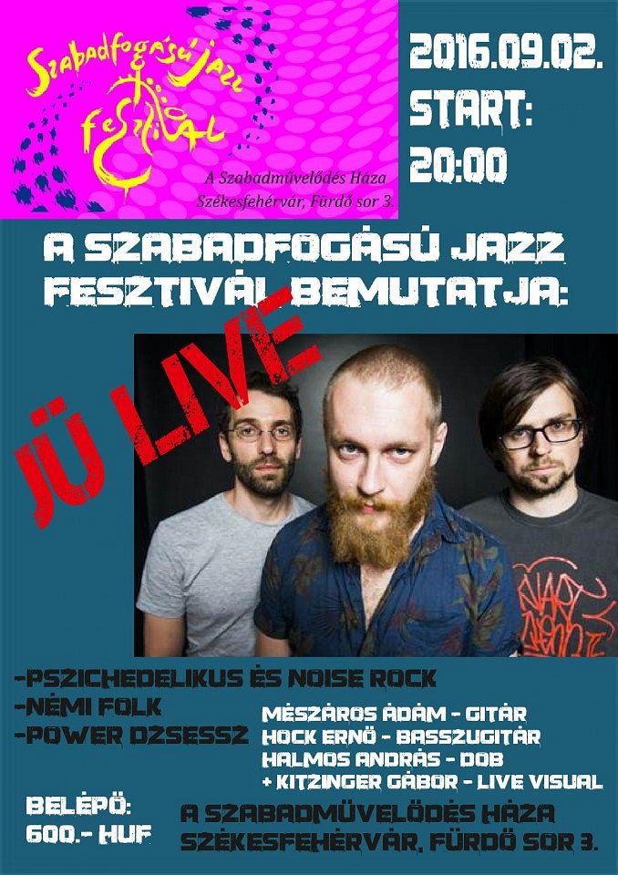 2016. szeptember 2-án újra megrendezik A Szabadművelődés Házában a szabadfogású jazz fesztivált. Idén a JÜ együttes lép fel, akik rock, folk és dzsessz zenével várják a közönséget. A koncert 20 órakor kezdődik. Az együttes tagjai: Mészáros Ádám (gitár), Hock Ernő (basszusgitár), Halmos András (dob) és + Kitzinger Gábor (live visual).