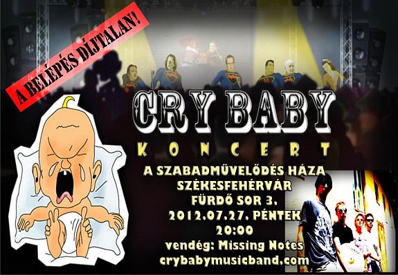 Július 27-én, pénteket este 9 órától a Szabadművelődés Háza előtt a tóparton koncertezik a CryBaby zenekar, a fellépést bárki ingyenesen megtekintheti. A Kiss G.László, Dobai István, Somogyi József, Sztupovszky Tamás, Mészáros Sándor alkotta formáció előtt, 8 órától a Missing Notes ad bemelegítő koncertet. További információ a www.crybabymusicband.hu internetes oldalon.