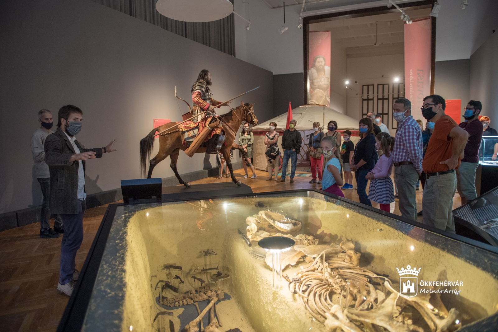 dr Szücsi Frigyes régész, az avar kor szakértője A kagán lovasa – avagy egy avar páncélos lovas életre keltése című kiállításban kalauzolta az érdeklődőket. A vezetéssel megidézte az 1400 évvel ezelőtti világot, bemutatva Kerényt, a nehézlovast, valószínű lakhelyét, a jurtát, a kiállított fegyverekkel pedig a hadviselés jellemzőit, amelyben egy számos haderőnemet felvonultató lovasságot kell elképzelnünk. A Szent István Király Múzeum a vándorkiállítást egy egyedi koncepcióval, kifejezetten hadászati, fegyvertörténeti vonalra fűzte fel, ami fontos szegmense a korszak megértésének. Az előadás kitért az 568-as avar honfoglalás időszakának környezeti bemutatására, ami lápos vidéket, gazdag őz-, vaddisznó- vagy bölényállományt jelentett. Libor Csilla antropológus a Csontig hatoló tudomány! világa alapján mutatta be az antropológia vizsgálati módszereit, és praktikus, a szakmai következtetésekhez szükséges információkat is megosztott a résztvevőkkel – III. Béla király és Antiochiai Anna koponyáinak a másolataival, illetve eredeti csontokkal szemléltetve az elmondottakat.
