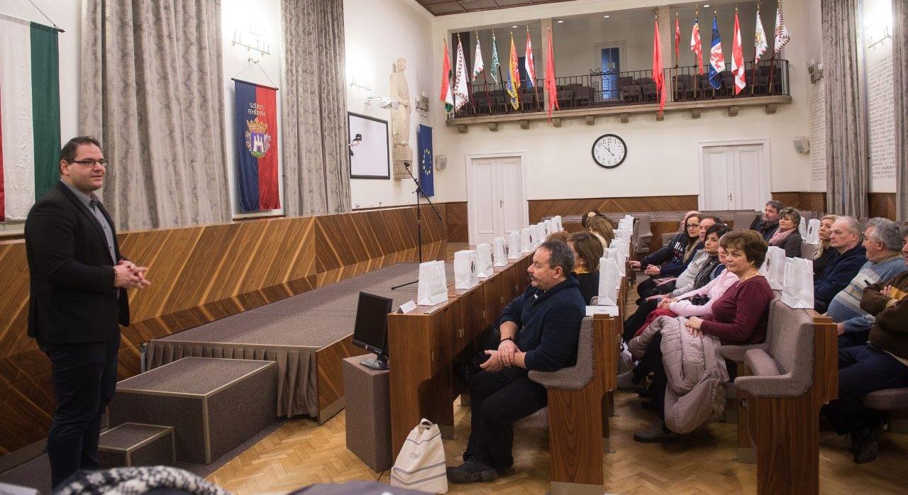 A harmincöt fős csoportot Mészáros Attila alpolgármester fogadta a Díszteremben. „Nagyon fontos, hogy mindig megmutassuk: Székesfehérvár valóban iskolaváros. Csaknem negyven köznevelési intézménye van a városnak, mintegy húszezer diák jár ezekbe az intézményekbe. Attól függetlenül, hogy állami fenntartású és működtetésűek lettek ezek az intézmények, még ugyanúgy nagyon szoros kapcsolatban állunk a Szakképzési Centrummal, és az iskolákkal, hiszen továbbra is székesfehérvári diákok és pedagógusok járnak ezekbe az intézményekbe. Sok olyan fejlesztést hajtottunk végre, és készülünk továbbiakra is, amelyek az intézményeket érintik.”