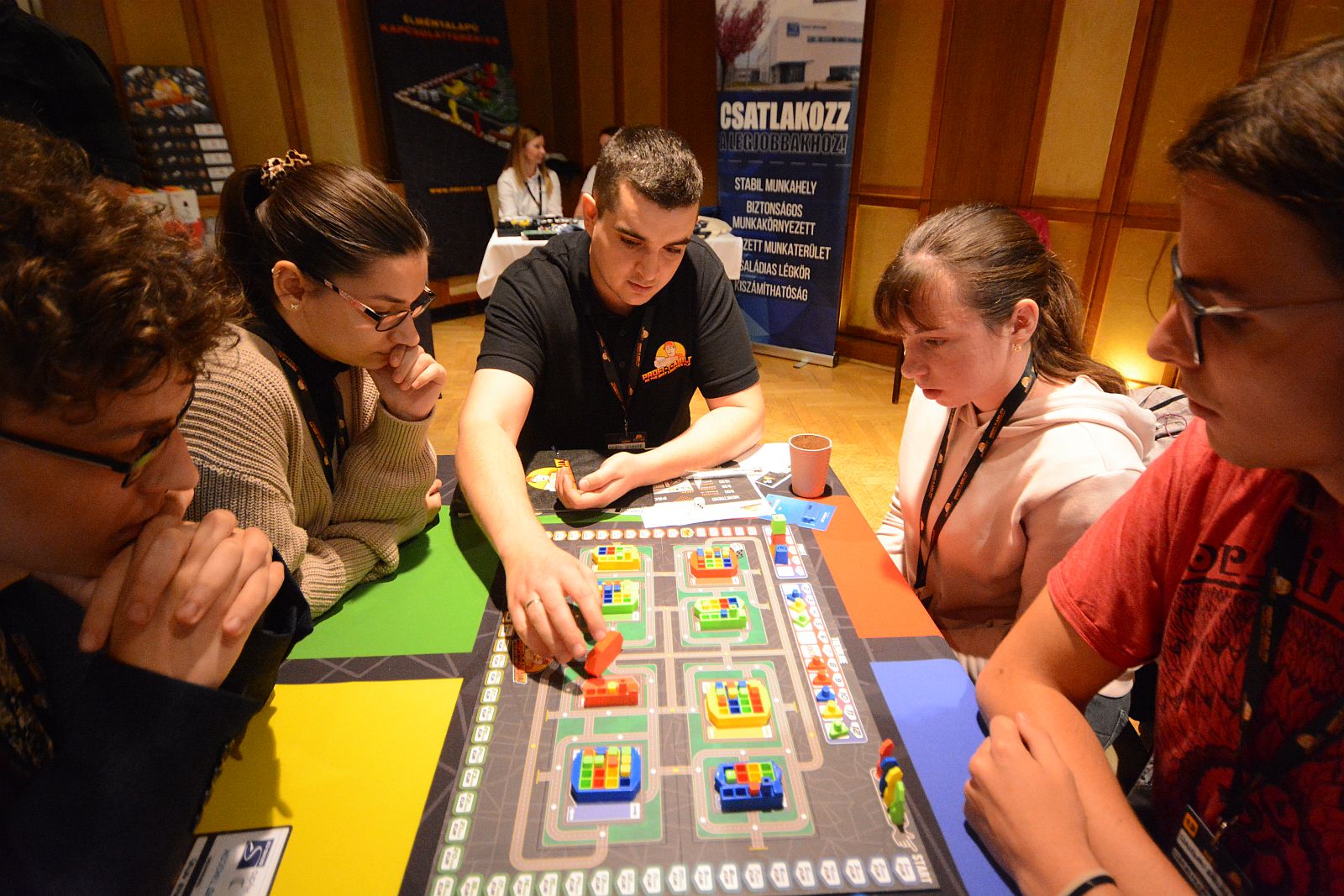 A Profi-T-Ability társasjáték lényege, hogy árukat kell szállítani a raktárak között különböző profitokért. Játszható párosban is, de Fehérváron is, ahogy minden régióban egyénileg zajlott verseny. A diákokat sorsolással ültették le az asztalokhoz és három fordulóban más más partnerekkel játszottak a fiatalok.