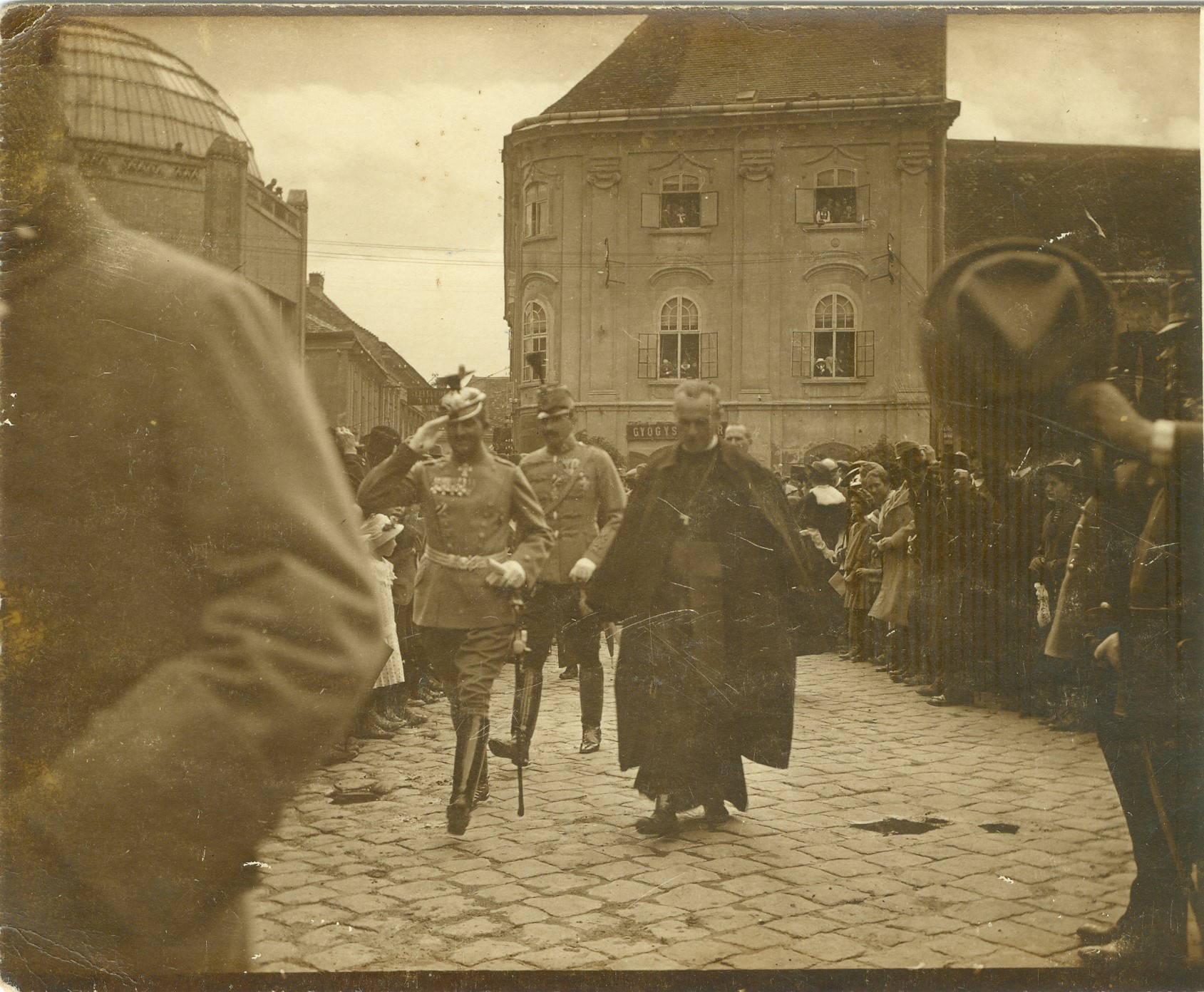 Visszatérés a Püspöki palotába a szoboravatás után. A megyéspüspök mögött egyenruhában gróf Széchényi Viktor főispán.