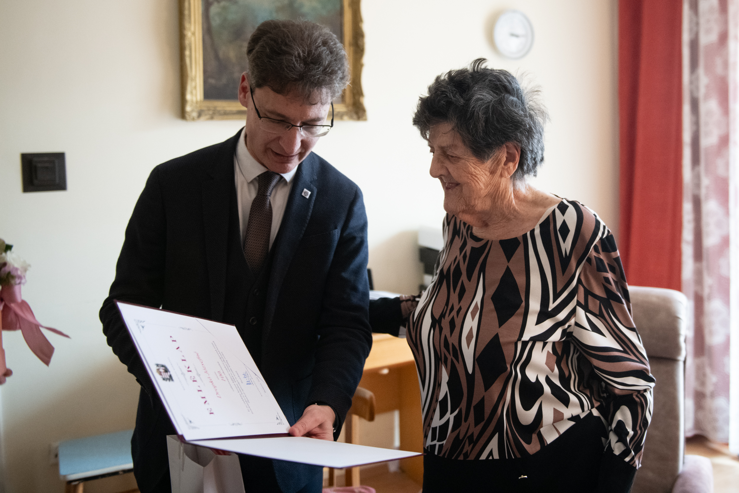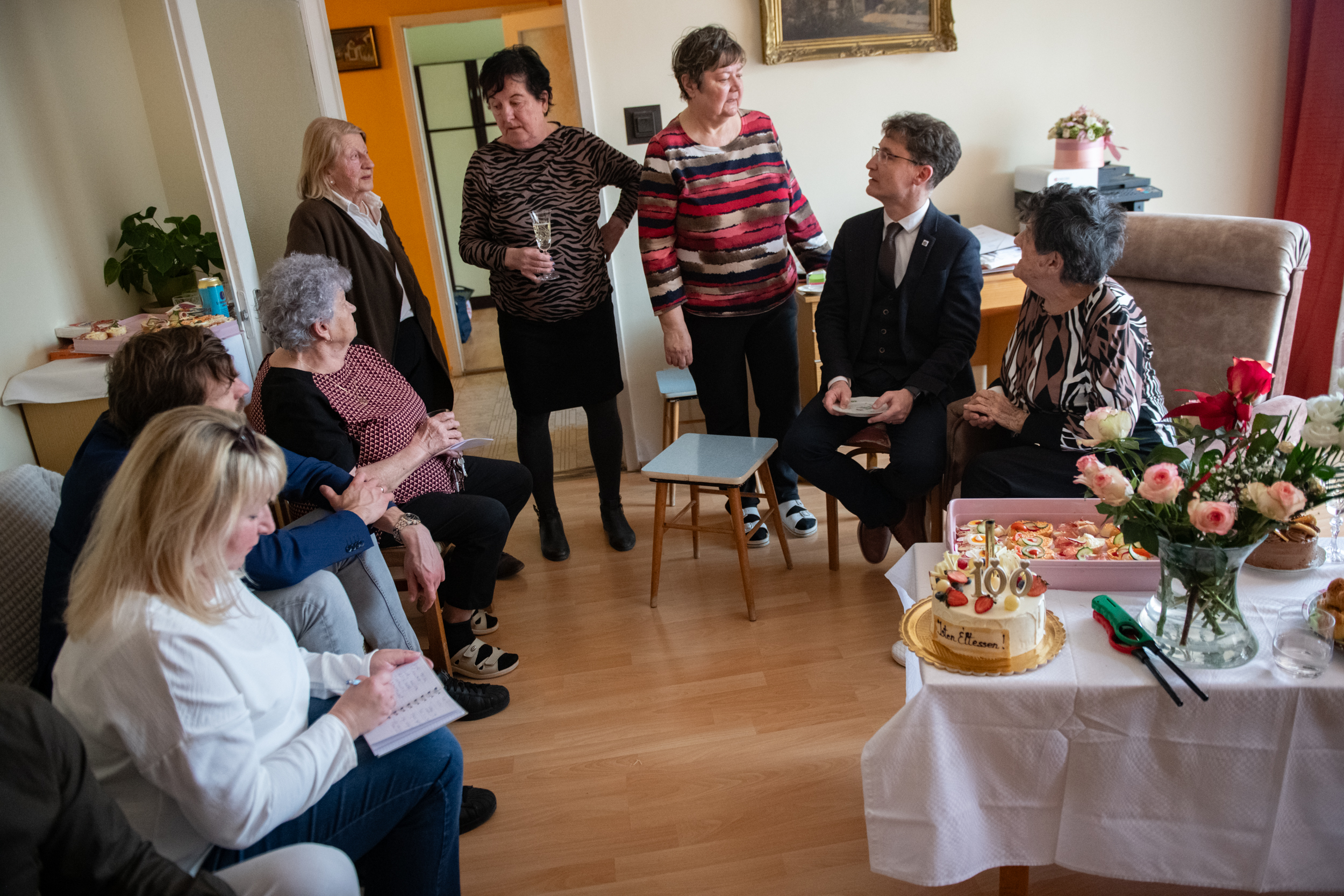 Szép hagyomány, hogy 90, illetve 95 évesen jubilálókat köszöntenek fel a városrészek önkormányzati képviselői. Ritka, ám annál szebb alkalom, ha valaki megéli és családjával, közeli ismerőseivel együtt tarthatja meg a századik születésnapját is! Ilyen ünnepi esemény helyszíne volt egy Sarló utcai lakás, ahol kedden délután dr. Cser-Palkovics András polgármester Víziváros korábbi és jelenlegi önkormányzati képviselőjével, dr. Horváth Miklósnéval és Patik Ferenccel közösen köszöntötte fel Dropkó Józsefnét.