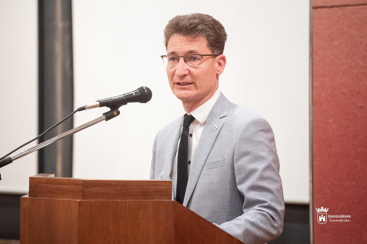 „Most egy olyan részterület 100. születésnapját ünnepeljük, amelynél – habár az egészségügy minden része nagyon-nagyon fontos – a családok életében talán nincs is meghatározóbb. Hiszen a szülők a legnagyobb kincsüket, a gyermeküket bízzák a szakemberekre.” – kezdte köszöntőjét Székesfehérvár polgármestere. Dr. Cser-Palkovics András felidézte, ő maga is aludt szülőként az osztályon, s pontosan érezte, milyen nagy felelősség is az, amikor egy orvos, egy szakápoló a gyermeket kezeli, s milyen hálás aztán az ember, amikor másnap vagy harmadnap egészségesen vagy gyógyulófélben, de hazaviheti gyermekét. A polgármester a város közössége nevében köszönte meg az itt száz éve folyó munkát, s ennek elismeréseként emléklapot adott át. Az ünnepségen részt vevő fiatal rezidenseknek, leendő szakorvosoknak pedig azt kívánta, találják meg Székesfehérváron a jövőjüket, s a következő évtizedeket írják majd ők a szakmai elődök tudását, hozzáállását átvéve.