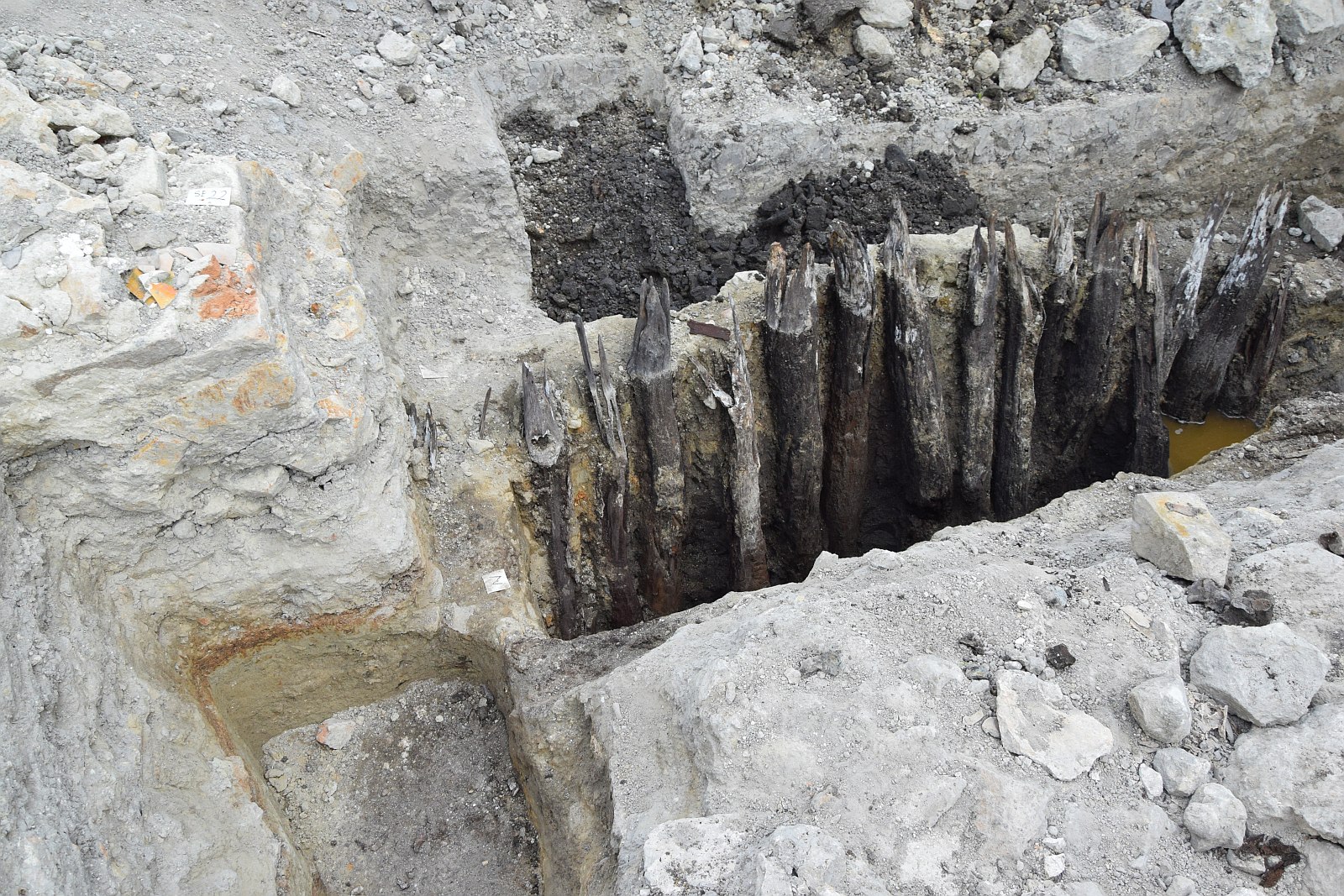 Középkori épen maradt tölgyfa cölöpsort is találtak a régészek a várfalon kívül