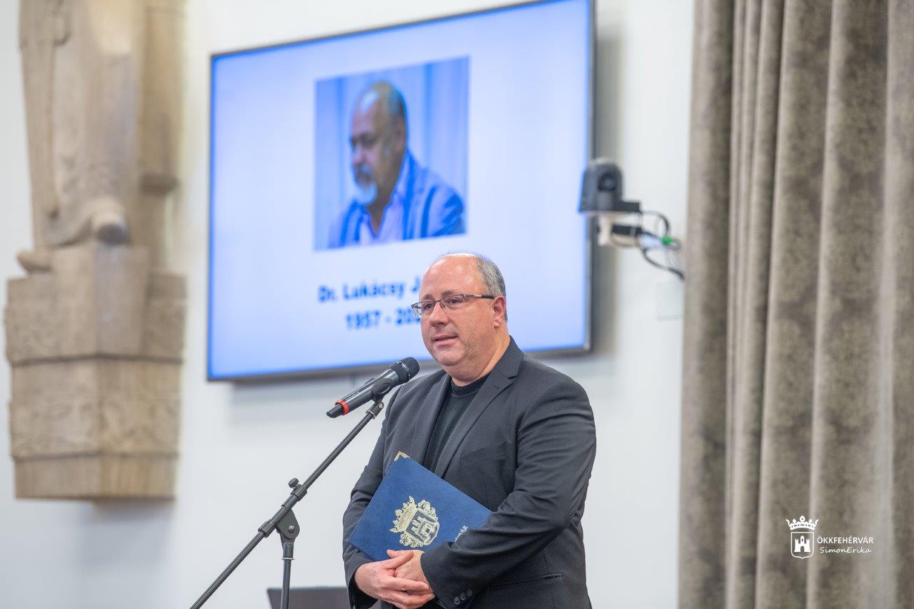 Nincs egy éve, hogy életének hatvanötödik évében elhunyt dr. Lukácsy József közíró, aki a Vörösmarty Társaság alelnöke volt. Rá emlékeztek a Városháza Dísztermében versekkel, dalokkal, az erdélyi Kibéd gyermekeinek műsorával. A kulturális és közélet útján vele együtt haladó barátok, útitársak visszaemlékezéseikben felidézték alakját, munkásságát.
