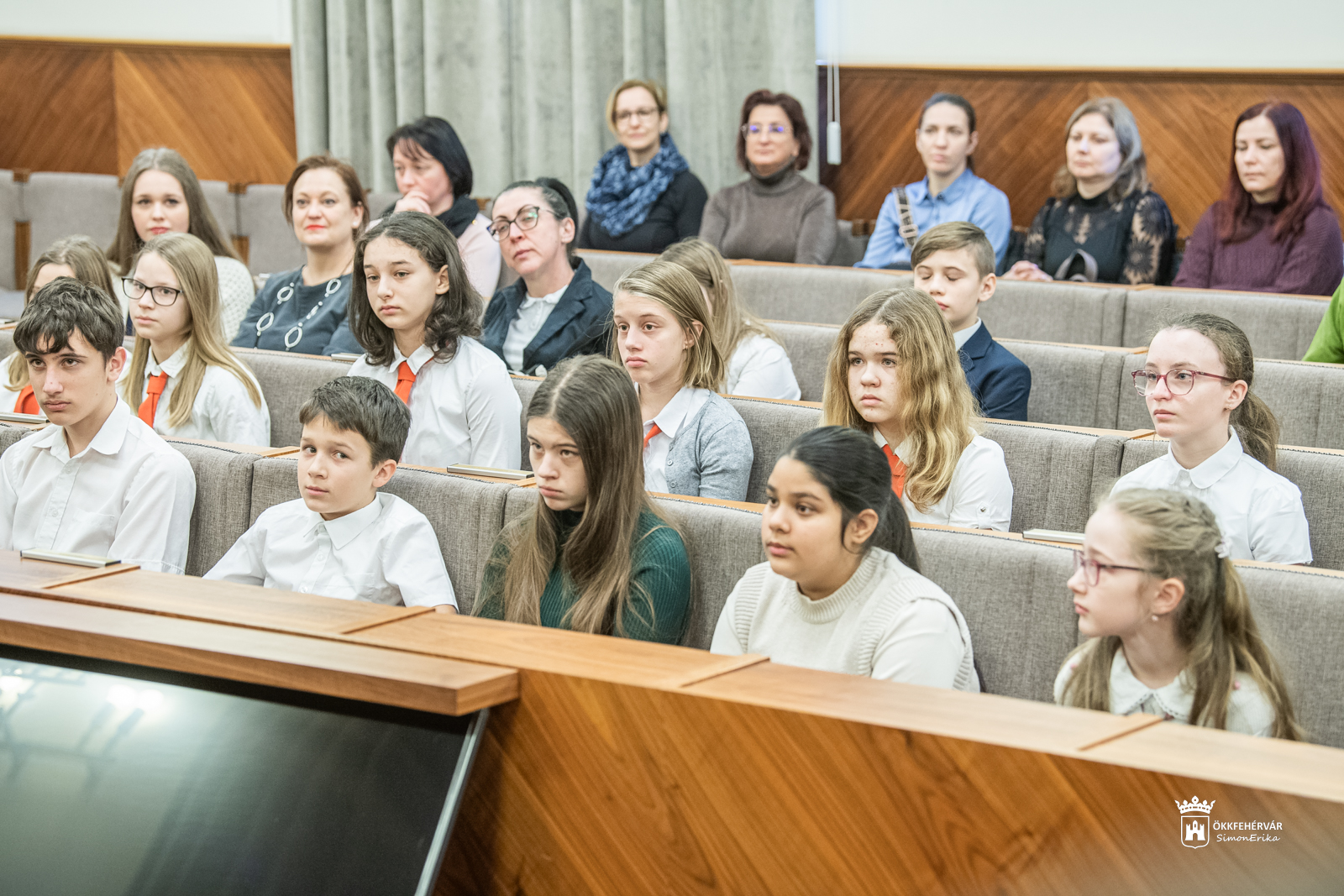 Szerdán délelőtt a Városháza Dísztermében Horváth Miklós Csaba alpolgármester köszöntötte a kezdeményezés éltetőit, valamint az idei naptárba bekerült gyermekrajzok készítőit. „Nagy megtiszteltetés valamennyi székesfehérvárinak, hogy ennyien bátorsággal felvállaltátok azt, hogy elindultok ezen a megmérettetésen és a mi nagy múltú városunkat megörökítitek. Szeretném megköszönni mindenkinek: a szervezőknek, a támogatóknak, valamint a felkészítő tanároknak és az intézmények igazgatóinak is a magam és dr. Cser-Palkovics András polgármester úr nevében, hogy biztatták a kis művészeket, akiknek köszönhetően ez a szép hagyomány tovább él.” – fogalmazott Horváth Miklós Csaba, majd jobbulást kívánt valamennyi gyermeknek és segítőnek, aki betegség miatt nem tudott személyesen részt venni a találkozón.