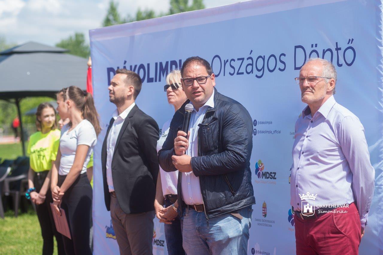 A tizenkilenc megyéből és Budapestről érkezett atlétákhoz dr. Molnár László, a Magyar Diáksport Szövetség stratégiai igazgatója is szólt. Köszöntőjében elmondta, hogy bár a tavaszvégi időjárás nem volt túl kegyes hozzájuk, az elmúlt napokban is nagyon szép versenyeket és kiváló eredményeket láthatott a közönség. Beszédében hangsúlyozta, a lányok mezőnyében közel 500, míg a fiúk mezőnyében több mint 500 nevezés érkezett országosan az év elején, akik közül most a megyék és Budapest legeredményesebb csapatai és egyéni versenyzői állhatnak rajthoz. Mint mondta, a Fehérváron született eredményekben a gyerekek mellett az edzőknek, a testnevelőiknek és a szüleiknek van a legnagyobb érdemük. Az igazgató köszöntője végén átadta Oroszi Zsuzsannának, a Magyar Diáksport Szövetség sportági albizottság vezetőjének, az Országos bajnokság főszervezőjének az MDSZ Küldöttgyűlése által megítélt Diáksportért-díjat.