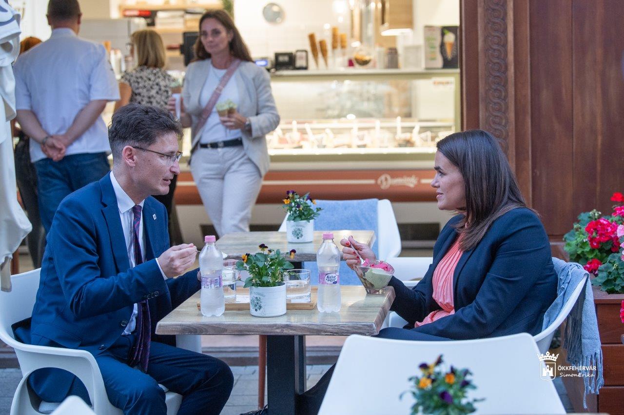 Novák Katalin betért a Damniczki cukrászdába is egy fagylalt erejéig, majd a Szent István Király Múzeumban megnézte a Munkácsy Székesfehérváron és a „Hadi múltunk kincsestára” – Válogatás a Hadtörténeti Múzeum értékeiből című páratlan kiállításokat.