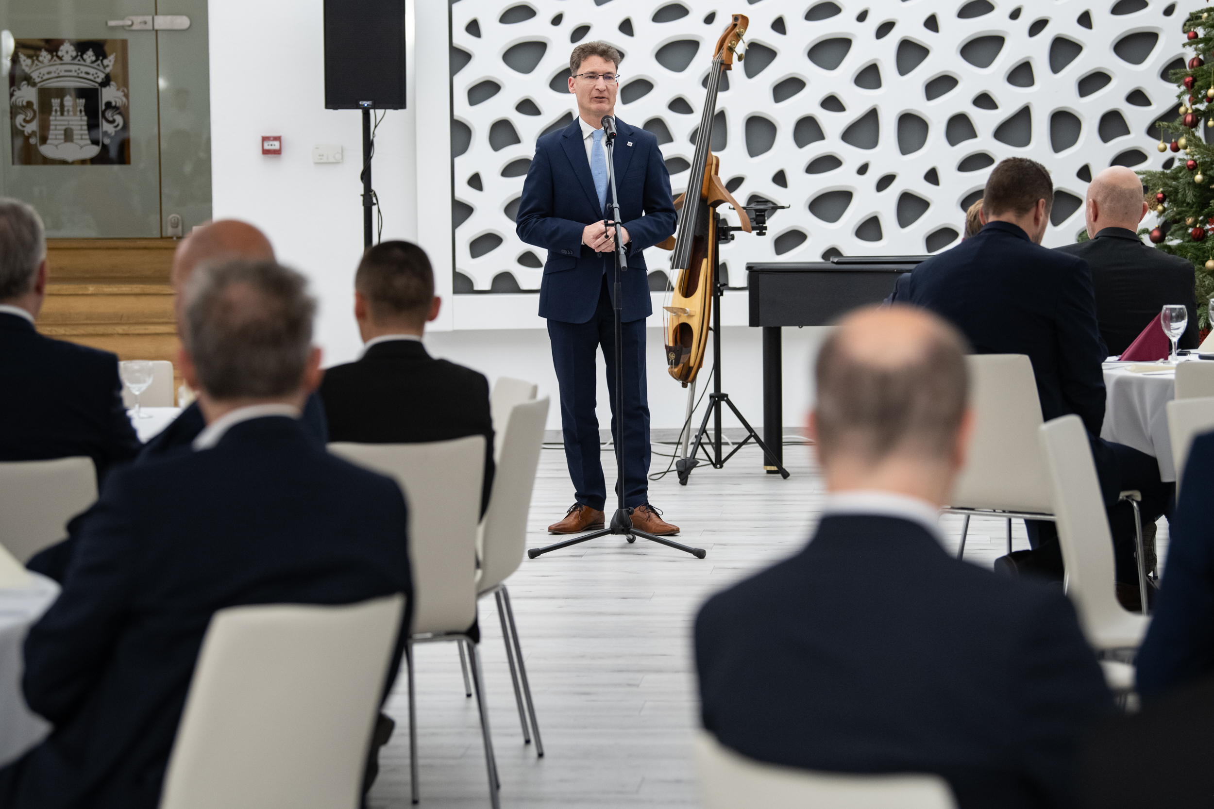 A Hiemer-ház Báltermében rendezett ünnepség elején az Alba Regia Szimfonikus Zenekar rézfúvós együttesének előadásában hangzott el három tétel Farkas Ferenc Régi magyar táncok című művéből, majd Székesfehérvár polgármestere köszöntötte a résztvevőket. Dr. Cser-Palkovics András emlékeztetett arra, hogy ez az alkalom – akárcsak az adventi időszak – lehetőséget ad a találkozásokra, a beszélgetésekre, az esztendő értékelésre. A városvezető köszönetét fejezte ki azért a széleskörű összefogásért, együttműködésért, segítségnyújtásért, ami Székesfehérvár városát és annak közösségét jellemzi.