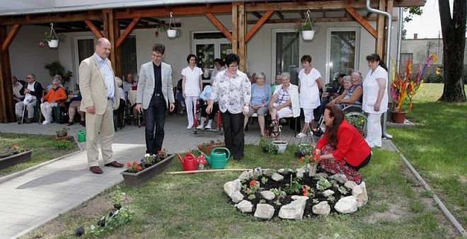 A „Virágosabb és zöldebb Székesfehérvárért" pályázat keretében mind a hét gondozási központjába nyert virágokat az Egyesített Szociális Intézmény - mondta el Mészáros Józsefné igazgató. Örömmel ültették el a Rádió úti intézményben is a palántákat a sajtótájékoztató résztvevőivel közösen.