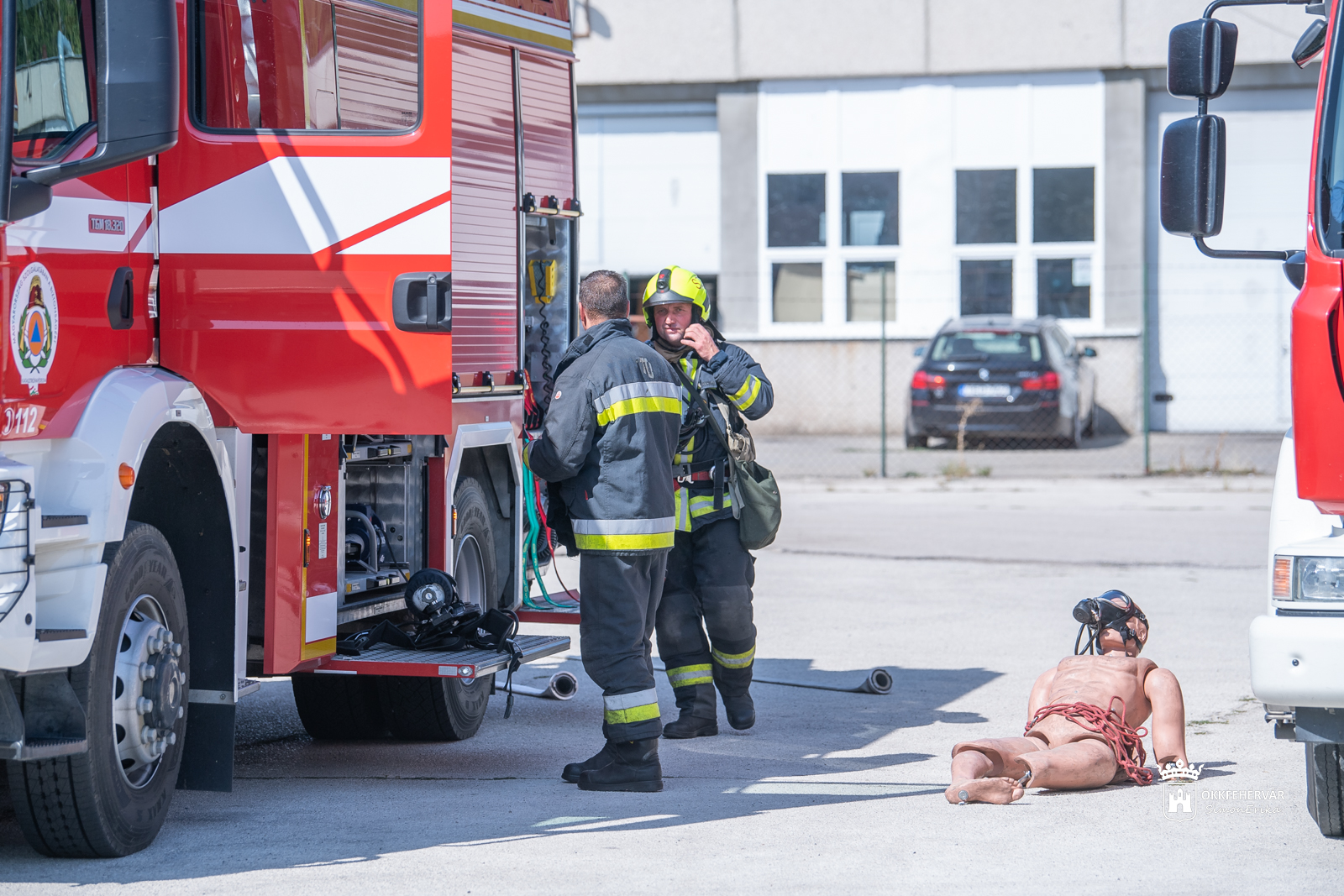 A keddi gyakorlat keretében – az érvényes riasztási rend alapján – került sor a telephelyen belüli, illetve a katasztrófavédelem értesítésével a külső elhárító intézkedések sorának végigvételére. A feltételezett rendkívüli helyzetben elsődlegesen ipari körzet érintett, illetve az M7 autópálya közelsége jelent még veszélyt – hangzott el. Udvardi János tűzoltó alezredes, a Székesfehérvári Katasztrófavédelmi Kirendeltség polgári-védelmi felügyelőjének koordinálásával a Mentőszolgálat, a Katasztrófavédelem, a Rendőrség, a Kórház, a Kormányhivatal, a Polgármesteri Hivatal, a Városgondnokság, az Autópálya-mérnökség, a Fejérvíz, az E.ON, a Tankerület és a Szakképzési Centrum, a Vöröskereszt, a Büntetés-végrehajtás és a Polgárőrség képviselői összefoglalták saját feladataikat, illetve ismertette az adott veszélyhelyzetben szükséges intézkedéseket.