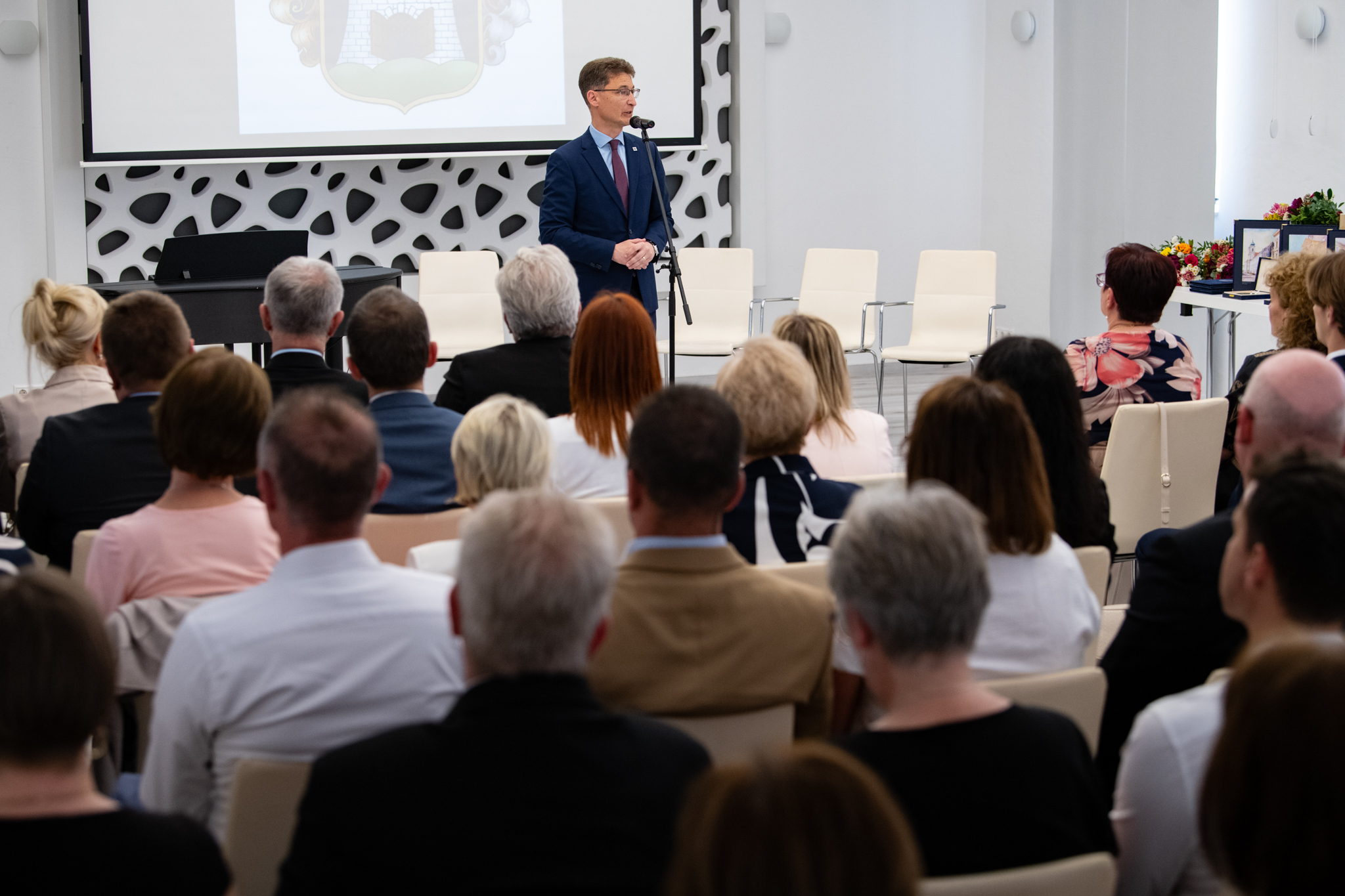 Mint elmondta, fontos megállnunk egy pillanatra és a város széles közössége nevében köszönetet mondanunk Székesfehérvár valamennyi pedagógusának, akik ezt az hivatást, életszemléletet választották és évek, évtizedek óta becsülettel végzik a munkájukat. Ennek a pályának mindig megvoltak a maga kihívásai, nehézségei, szépségei. Székesfehérváron több területen sikerült közös erővel előrelépni, beleértve többek között a pedagógusbéremelést és életpályamodellt, melynek finanszírozásához a város megkapta a szükséges kormányzati segítséget. Ugyanígy igaz ez az intézmények, óvodák, iskolák felújítására, melyek uniós, kormányzati vagy saját forrásból valósultak meg, illetve haladnak igen látványosan. Fontos, hogy az intézmények olyan állapotban legyenek, melyet az oktatók és a fiatalok egyaránt megérdemelnek ebben a városban – emelte ki.