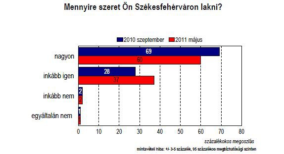 Az Echo Szociológiai Kutatóintézet által készített Alba Radar legújabb kutatásából kiderült, hogy a fehérváriak 60 százaléka nagyon szeret ebben a városban élni és további 37 százalék is az inkább szeret itt lakni igen választ adta.
