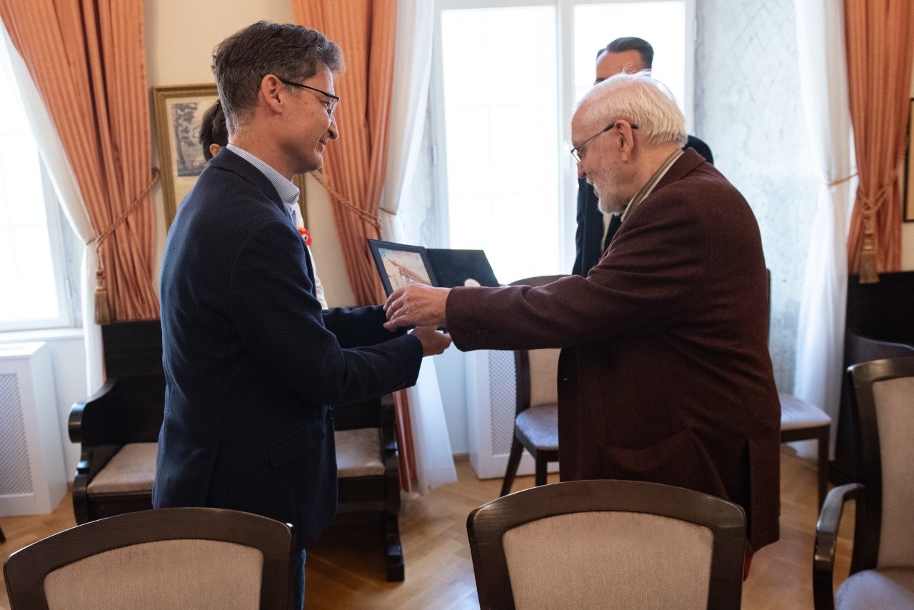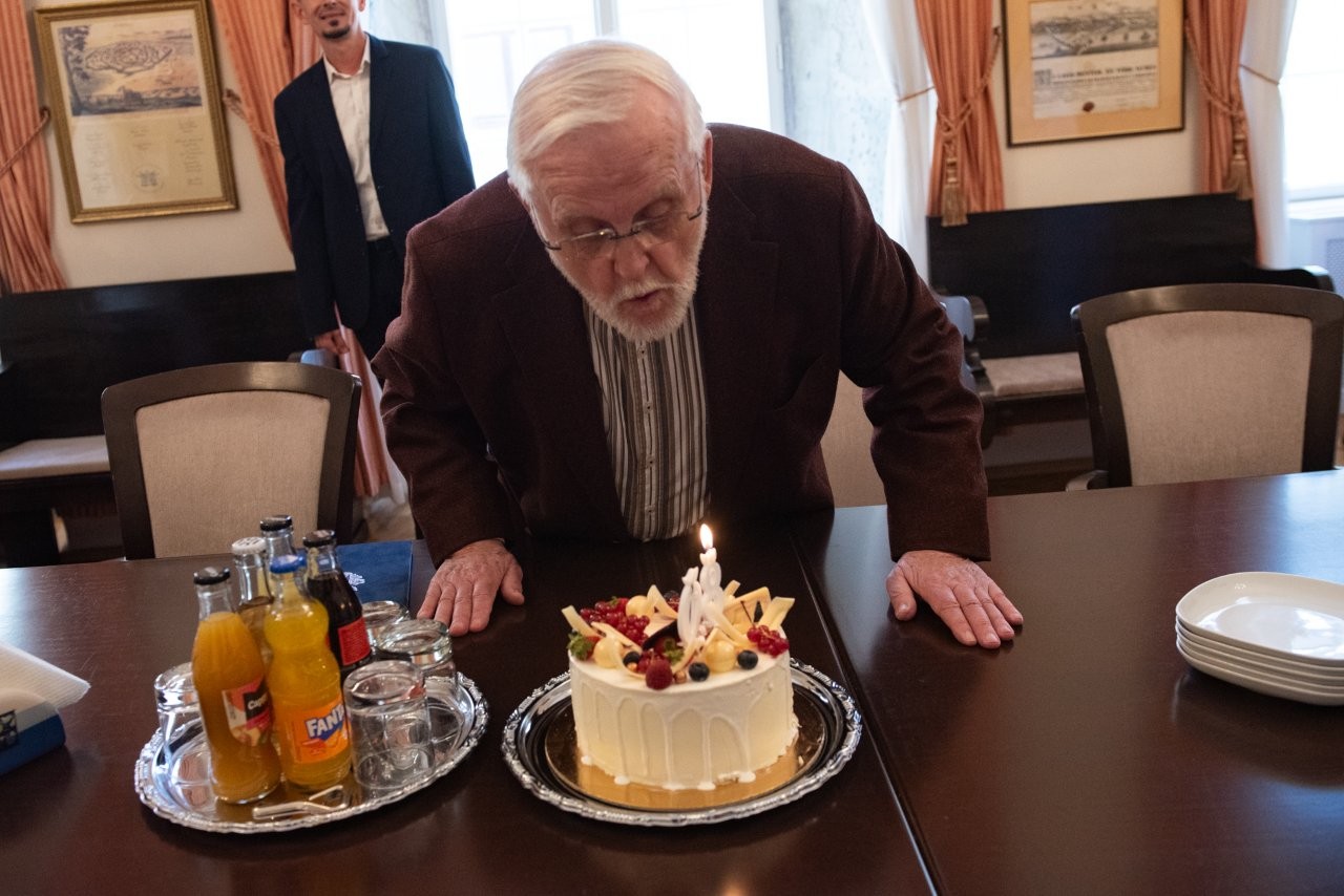 Jókívánságai kíséretében Polgármesteri ezüst emlékéremmel köszöntötte a ma 80. születésnapját ünneplő Jorma Virtanent, finn testvérvárosunk, Kemi korábbi polgármesterét dr. Cser-Palkovics András.