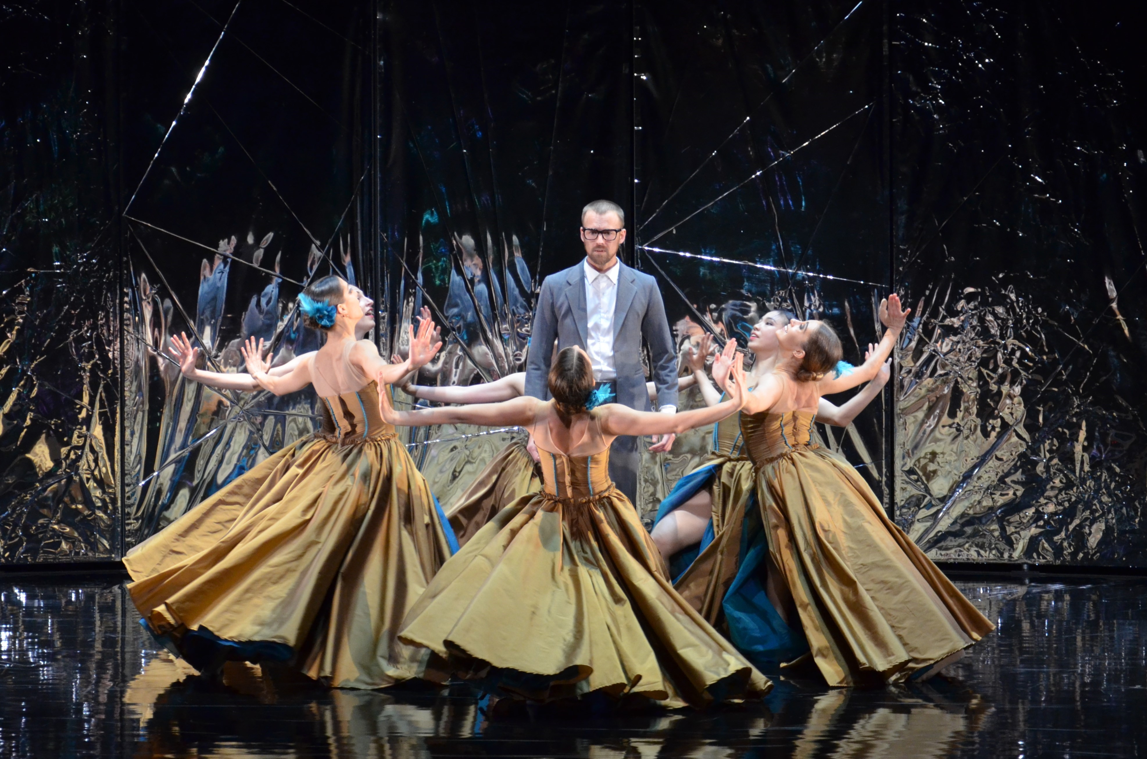 A darab karakterei és történései tulajdonképpen Siegfried agyszüleményei, látomásai, álmai. Néha a szobát jelző falon látjuk a tó hullámzását, a nyitányon egy piros körmű női kéz int, az anya inti a fiát. Siegfried egy szobában ül, és Rothbartra, a fekete hattyúra, rossz lelkiismeretére (Cristina Porres Mormeneo), az ellenpont Odette-re, a fehér hattyúra (Kovalszki Boglárka) önmaga jó és rossz énjét vetíti ki. Gyönyörű, látványos mozdulatok, mindent elsöprő lendület, lágy szépség jellemezte a táncokat, kiváló táncosok közreműködésével.