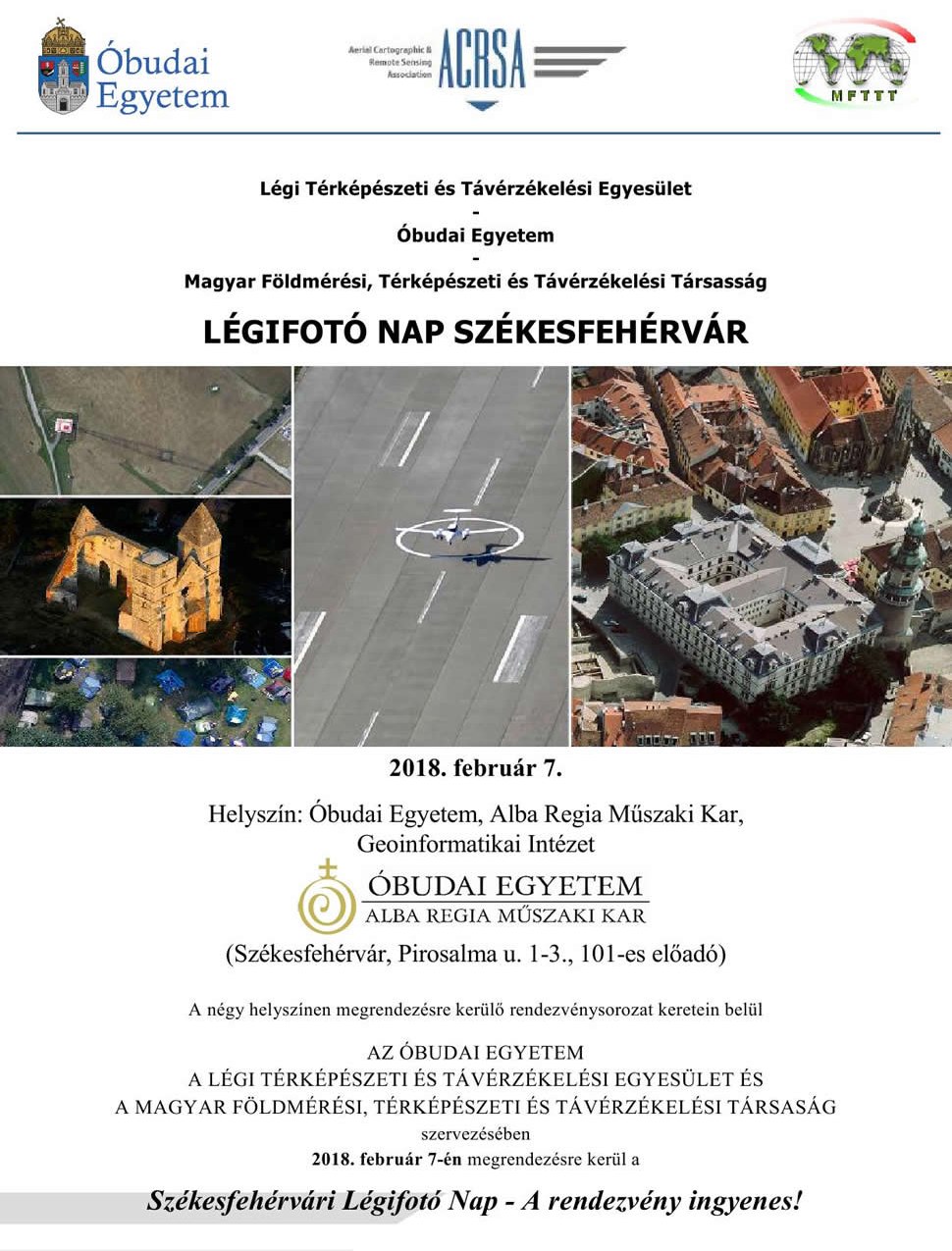 Az Óbudai Egyetem Alba Regia Műszaki Kara, a Légi Térképészeti és Távérzékelési Egyesület és a Magyar Földmérési, Térképészeti és Távérzékelési Társaság közösen szervezi meg február 7-én a Székesfehérvári Légifotó Napot február 7-én.