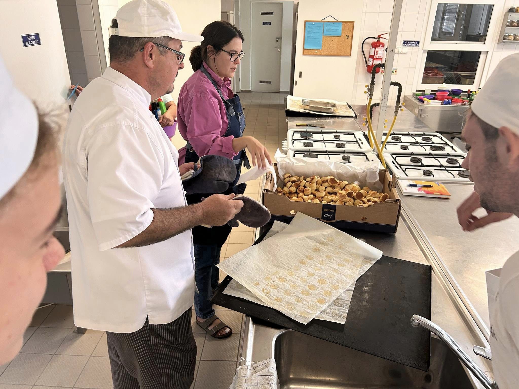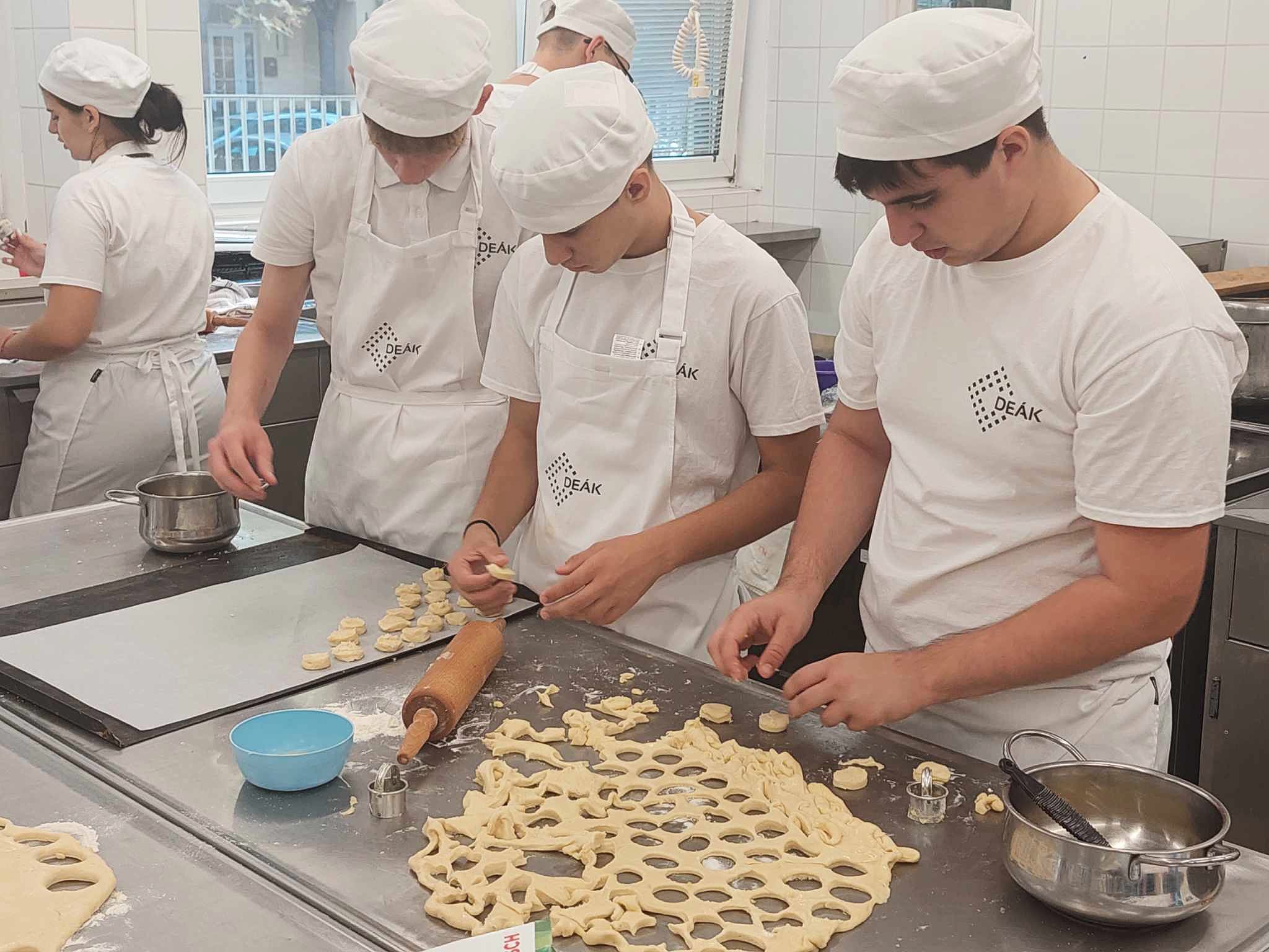 A Székesfehérvári SZC Deák Ferenc Technikum és Szakképző Iskola oktatóinak irányító közreműködésével a diákok sütötték a pogácsákat.