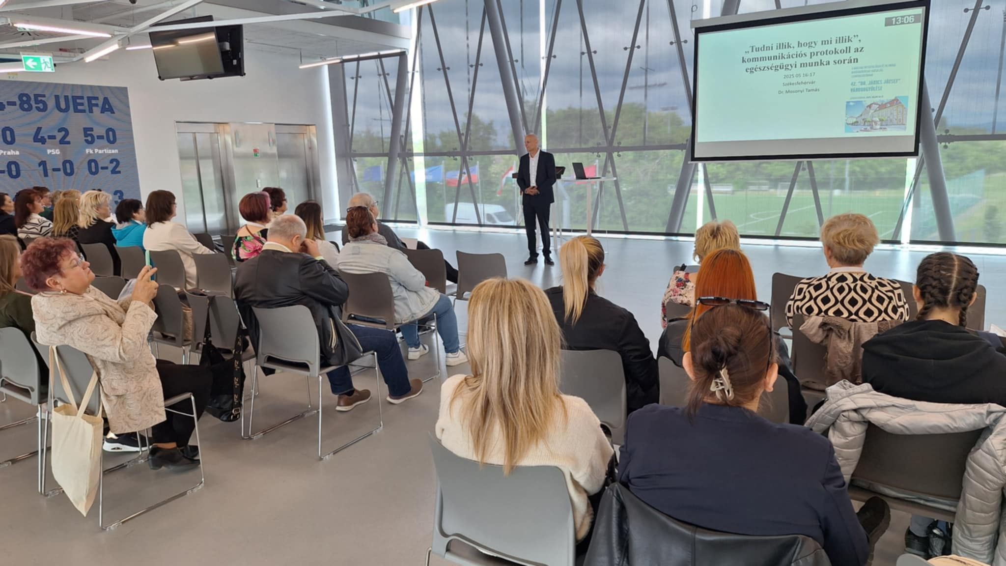 A nap első előadását Dr. Mosonyi Tamás tartotta „Tudni illik, hogy mi illik” címmel, amelyben az az egészségügyi munka során alkalmazott kommunikációs protokollról volt szó.