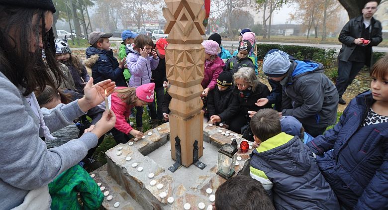 A Géza utca Királysor kereszteződésben a Széna Téri Általános iskola kisdiákjaival és a Gróf Széchenyi István Szakközépiskola diákjaival közösen gyújtott gyertyát Deák Lajosné önkormányzati képviselő.