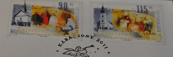 A 90 Ft-os bélyegkép bal oldalán a nagykarácsonyi templom épülete, mellette pedig hazánk legnagyobb, Nagykarácsonyban található kültéri betlehemének részlete található. A 115 Ft-os címlet bal oldalán a vörsi római katolikus templom épülete, mellette pedig a templomban évről-évre megépített, legnagyobb európai beltéri betlehem részlete látható.