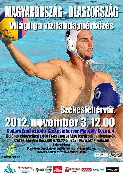 November 3-án, szombaton megkezdi hazai Világliga szereplését a magyar férfi vízilabda válogatott. Az éppen regnáló világbajnok, Olaszország nemzeti csapata lesz az ellenfél a székesfehérvári Csitáry G. Emil Uszodában. A felnőttek összecsapását a két nemzet junior válogatottjának mérkőzése előzi meg.