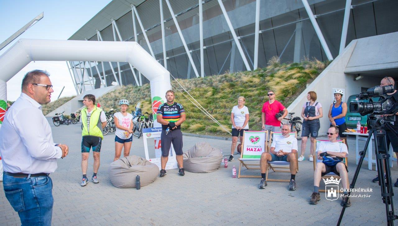 A Fehérvárra érkező bringás csapatot Mészáros Attila fogadta a MOL Aréna Sóstónál. Az alpolgármester örömét fejezte ki, hogy a nemes kezdeményezésnek Székesfehérvár is részcélja lehet.