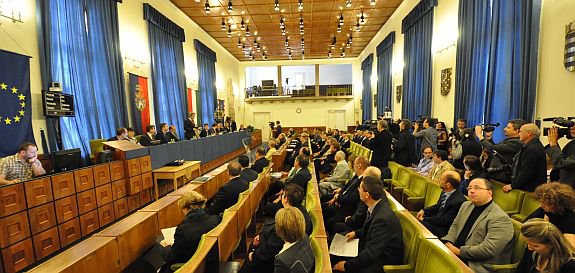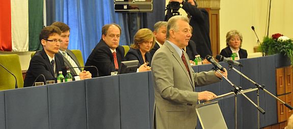 Dr. Cser-Palkovics András polgármester köszöntötte a köztársasági elnököt, megköszönte, hogy Székesfehérvárra és Fejér megyébe látogatott. Mint mondta 2013 emlékév lesz Székesfehérváron, így szeretnénk méltó módon emlékezni Szent Istvánra és az1938-as Országgyűlésre. Kérte az államfőt, hogy méltó módon emlékezhessünk meg Fehérváron őseinkről és a városról. A közgyűlésen Vargha Tamás a Fejér Megyei Közgyűlés elnöke és Dorkota Lajos kormánymegbízott is köszöntötte az államfőt, majd az önkormányzatok frakcióvezetői szóltak az ülésen.