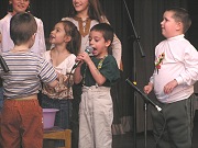 ![]() Versekkel és dalokkal édességeket nyerhettek a gyerekek |