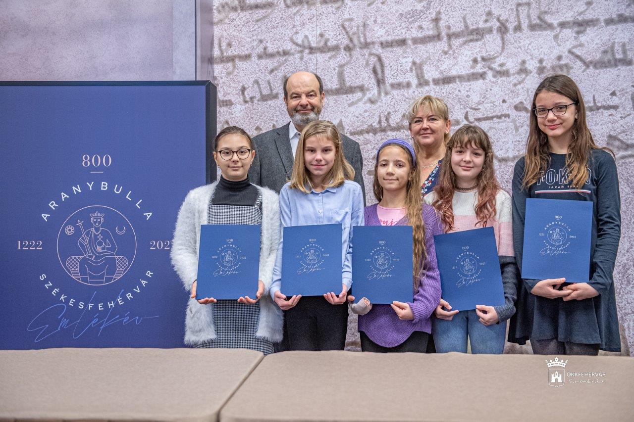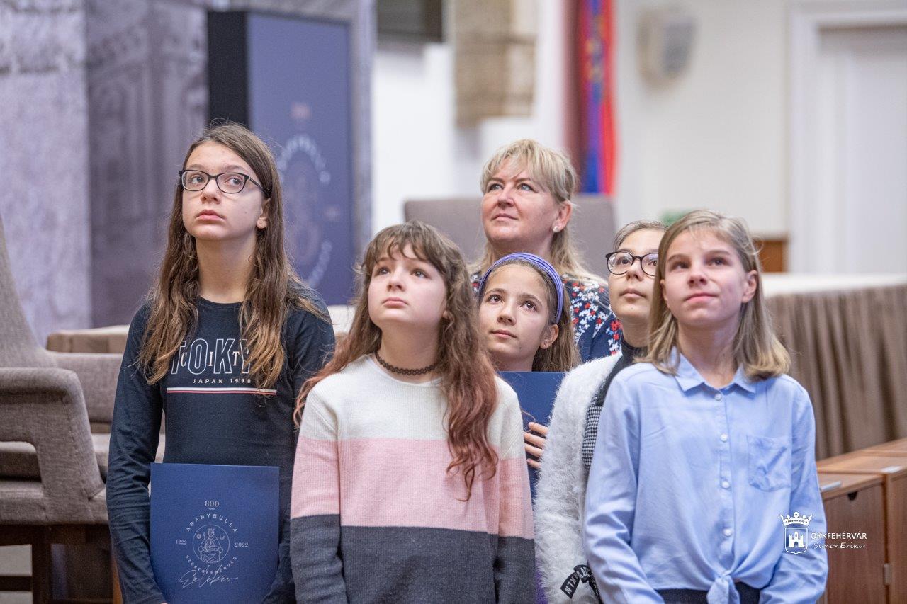 A diákokat – Botha-Tóth Hannát, Biró Zoét, Bukovics Emesét, Kovács Jázmint, Rádai Hedviget és Vágvölgyi Zsófiát – valamint tanárukat, Mészáros Katalint a Városháza Dísztermében köszöntötte Lehrner Zsolt alpolgármester és gratuláló oklevelet nyújtott át számukra az Önkormányzat nevében.