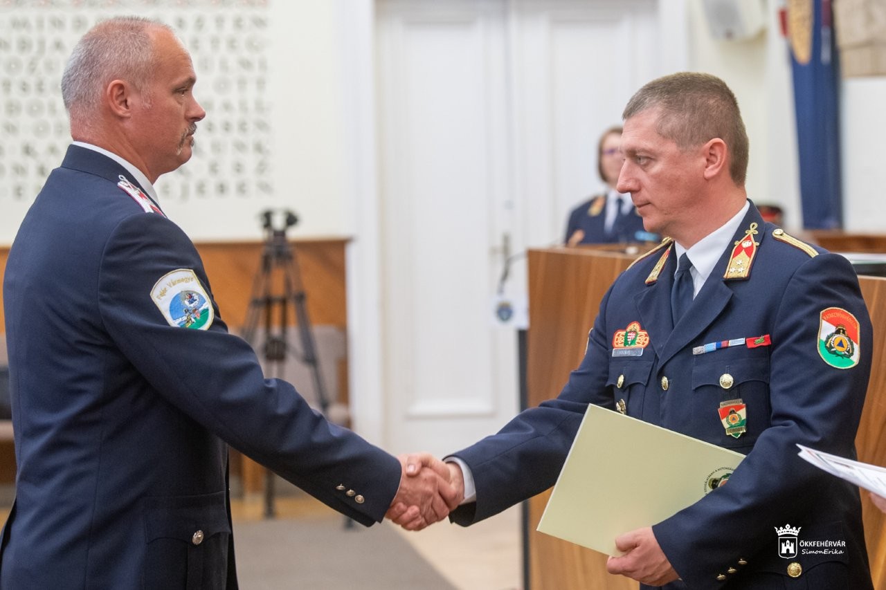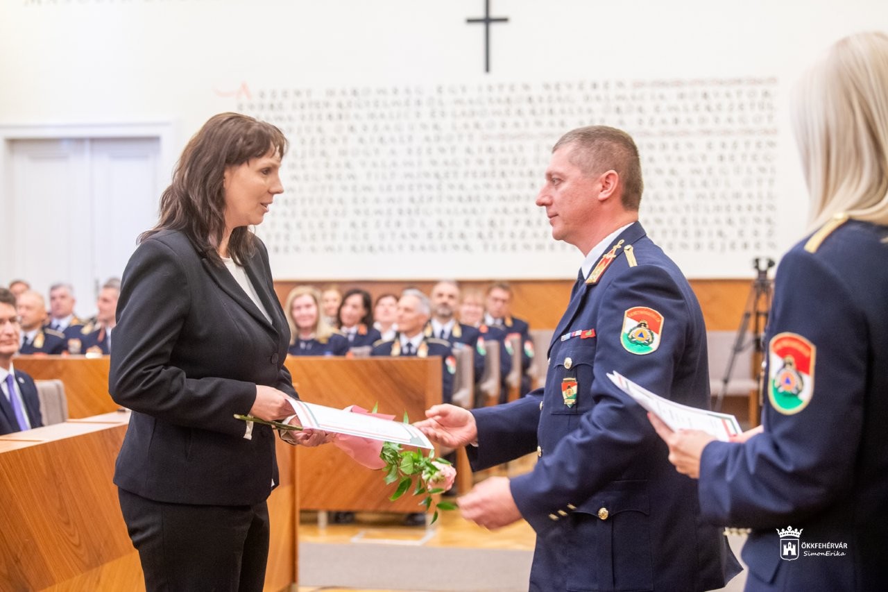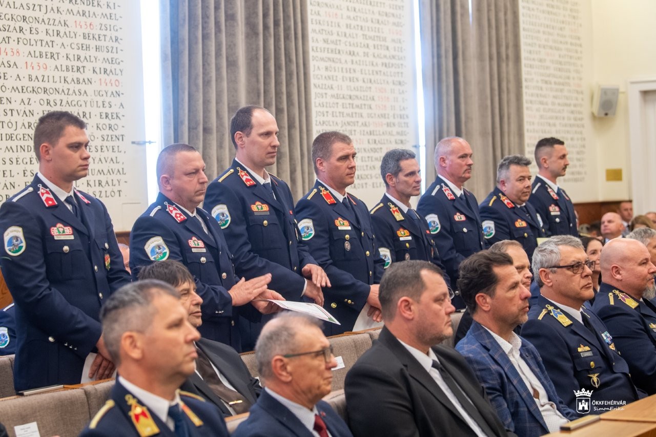 A székesfehérvári ünnepi állománygyűlésen főigazgatói és igazgatói elismeréseket nyújtott át dr. Hábermayer Tamás tűzoltó ezredes, a Fejér Vármegyei Katasztrófavédelmi Igazgatóság igazgatója. Dr. Góra Zoltán tűzoltó altábornagy, a Belügyminisztérium Országos Katasztrófavédelmi Főigazgatóság főigazgatója beosztásában hosszú időn át végzett kiemelkedő munkája elismeréseként dicséretben és jutalomban részesítette Kutai Balázs tűzoltó zászlóst, a vármegyei műveletirányító ügyelet műveletirányító referensét, Brezovszki Ferenc tűzoltó főtörzsőrmestert, a dunaújvárosi hivatásos tűzoltó-parancsnokság gépjárművezetőjét és Parzinkasz Sztavrosz tűzoltó főtörzsőrmestert, a pusztaszabolcsi katasztrófavédelmi őrs beosztott tűzoltóját.