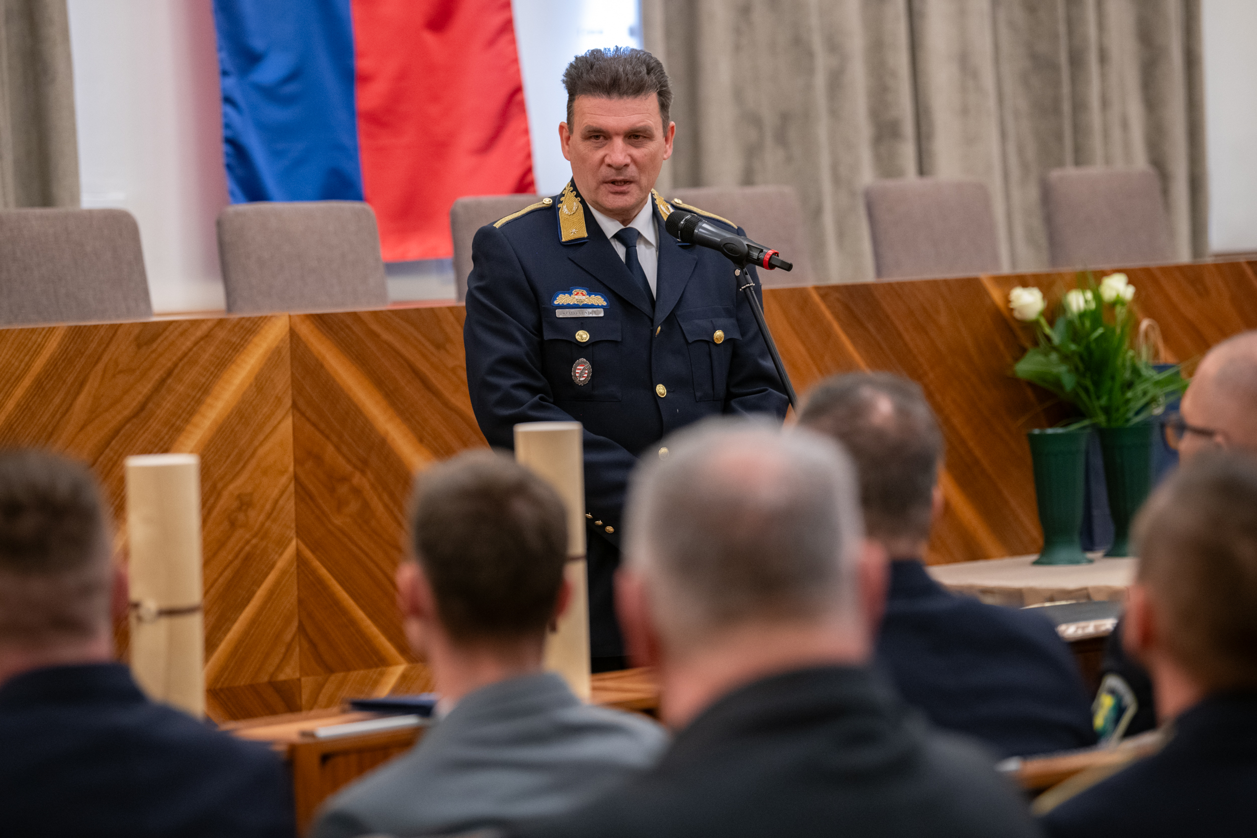 A város elismeréseinek átadását követően mintegy negyven, különböző beosztásban dolgozó rendőr és rendőrségi dolgozó vehetett át kitüntetéseket, illetve Év rendőre elismeréseket a települések polgármestereitől, valamint Szabó Vendel rendőr dandártábornoktól, vármegyei rendőrfőkapitánytól. Az ünnepi pillanatokat követően a főkapitány gratulált az elismerésben részesülteknek. „Ti vagytok a jók között a legjobbak, s amint a példa mutatja, ez számos alkalommal egyezik a lakosság, a települések véleményével is.” – fogalmazott Szabó Vendel, akinek értékelése szerint a tavalyi évben magas színvonalú munkát végzett a vármegyei rendőrség. Korábban nem tapasztalt kihívásokkal szemben is helyt kellett állni, amilyenek például a kibertérben elkövetett bűncselekmények. Amint a főkapitány rámutatott, az arány mára megfordult, a fizikai térben elkövetett lopás helyett az online csalás lett a legmeghatározóbb bűncselekmény, de kiemelten foglalkoztak például a gyermekkorúakat ért bűncselekményekkel, a Delta projektben pedig a drogterjesztői hálózatok visszaszorításával is. „Eredményesek és jók voltunk, amit nem csak a 75 százalékos nyomozási eredmény mutat, hanem a járási fórumokon adott visszajelzések is: a vármegye lakossága bízik a vármegyei rendőrségben. Ez egyedül nem ment, köszönjük az együttműködést az önkormányzatoknak, a polgárőrségnek, velük együtt sikerült a bizalmon alapuló légkört kialakítani. Köszönöm az ezért végzett munkát a teljes rendőri állománynak!” – zárta ünnepi beszédét a dandártábornok.