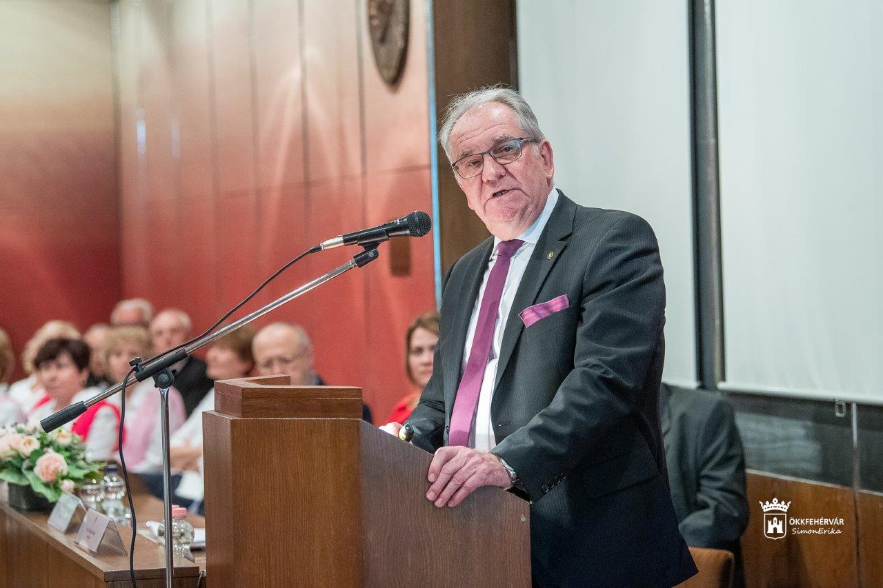 Az ünnepi esemény főszónoka Dr. Kárpáti Róbert, a kórház Pszichiátriai Osztályának osztályvezető főorvosa volt, aki Szent György Emlékérem kitüntetésben részesült.