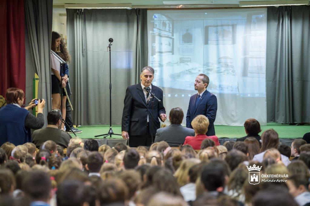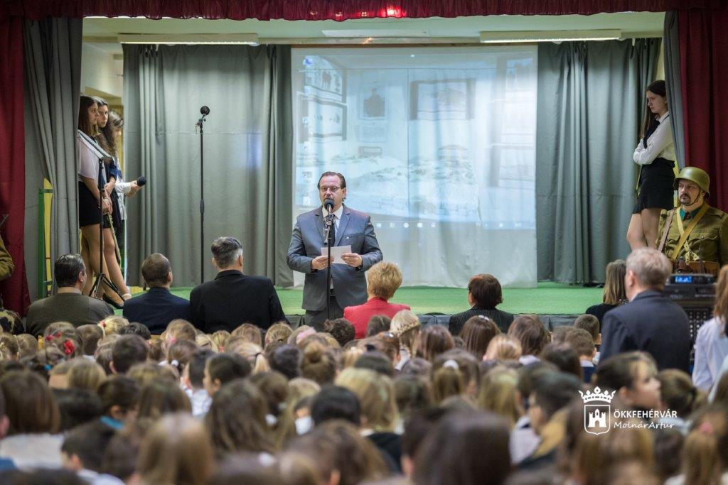 Ezután Török Szabolcs, a Székesfehérvári Tankerület igazgatója szólt a résztvevőkhöz. Azt mondta: imádkozzunk azért, hogy a vészterhes idők soha ne jöjjenek vissza. A ma élőknek az a kötelességük, hogy a feledés helyett emlékezzenek a történtekre, becsüljék és szeressék egymást. A Vasvári Pál Általános Iskola az az intézmény, amely élen jár ebben a törekvésben.