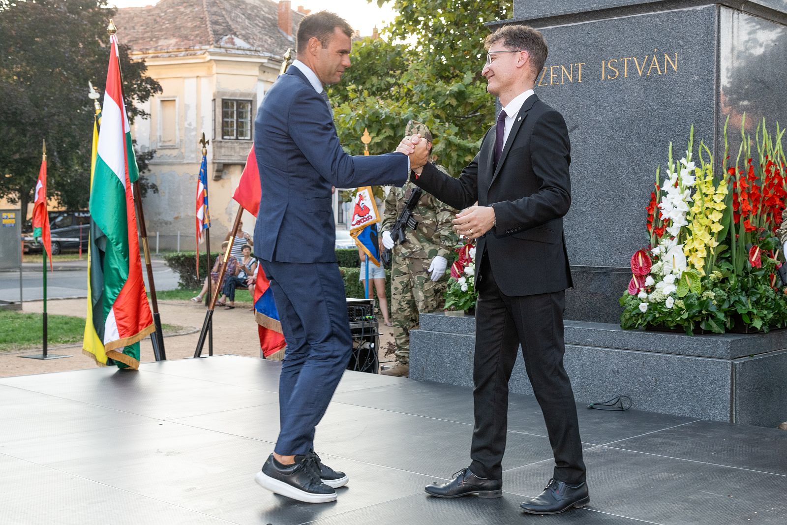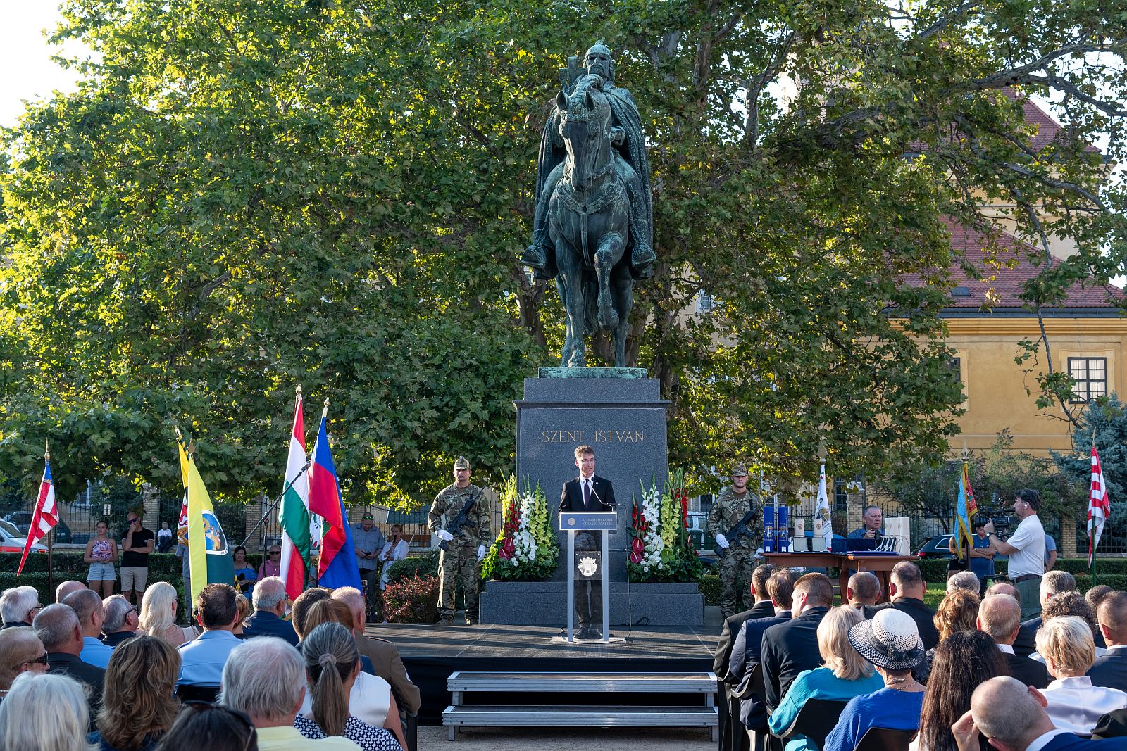 A Szent István-napi ünnepi díszközgyűlésen jelen voltak Tessely Zoltán és Törő Gábor országgyűlési képviselők, dr. Molnár Krisztián, a Fejér Vármegyei Közgyűlés elnöke, valamint a történelmi egyházak képviselői, a fegyveres, rendvédelmi és igazságügyi szervek tisztviselő is. A díszközgyűlés végén közös koszorút helyeztek el a résztvevők, Magyarország Kormánya, az Országgyűlés, a Magyar Honvédség, Fejér vámegye és Székesfehérvár minden polgára nevében államalapító Szent István királyunk szobránál.