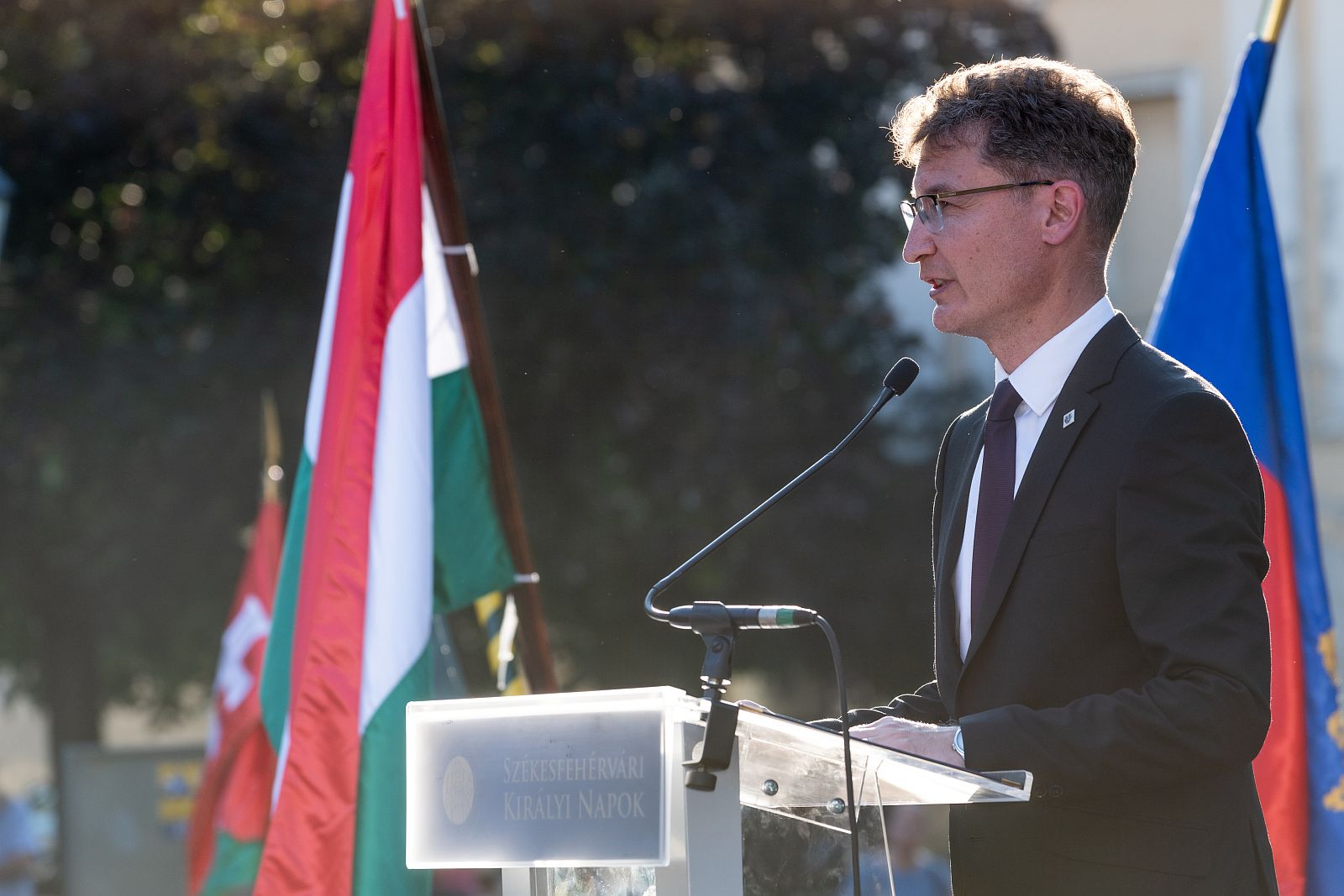 „István királyunk uralkodásának és tetteinek híre az akkori ismert világ egészét bejárta, Rómától Konstantinápolyig, a zarándokok Jeruzsálemétől Odilo apát burgundiai monostoráig. Az újonnan született magyar államot keresztény hittel, páratlan diplomáciai érzékkel és ha kellett, a kard erejével építette fel és őrizte meg Kelet és Nyugat között. Szent István felismerte és döntéseinek alapjává tette, hogy két világ közé beékelve hazánk túlélésének egyetlen lehetséges módja az egyensúly e két világ birodalmai között. Annak érdekében pedig, hogy Magyarország ne ütközőpont, hanem híd legyen, a Szent Földre tartó új zarándokutat biztosított hazánkon és Fehérváron keresztül. Ekkor került fel először Székesfehérvár az akkor ismert világ térképére, kapoccsá válva Nyugat és Kelet között. Ezt a kapcsot újra formálni ma is érdekünk és küldetésünk, ezért nagy öröm, hogy a Közel-Kelet egyik legősibb, kiemelkedő kulturális örökséggel bíró városával, Batrounnal most szövetséget köthetünk.” – kezdte ünnepi beszédét dr. Cser-Palkovics András, Székesfehérvár polgármestere. Majd kitért az Esztergommal aláírt partnerségre is: Szent István városainak össze kell fognia, együtt kell működnie, hogy közösen hozzunk létre szellemi és lelki végvárrendszert a Szent Király öröksége számára. Ahogyan a világunk ügyei és irányai felsejlenek, nagy szükségünk lesz erre városként és nemzetként is!