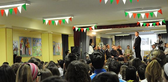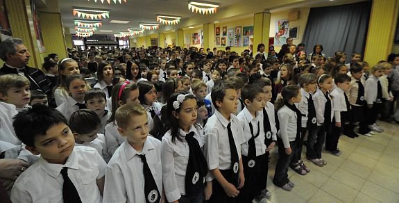 A Vasvári Iskola pedagógusai és diákjai ma reggel az aulában gyűltek össze, és kísérték figyelemmel a kiállítás megnyitóját. Az eseményen részt vett dr. Cser-Palkovics András polgármester, illetve jelen voltak a Klebelsberg Intézményfenntartó Központ, a Magyar Honvédség Összhaderőnemi Parancsnoksága, a történelmi egyházak és városi hagyományőrző szervezetek képviselői. A kiállítás megnyitója alkalmából szervezett ünnepségen Laczkó Gábor, a Vasvári Pál Általános Iskola igazgatója elmondta, hogy fontos pillanat az iskola életében a tárlatnyitó, hiszen minden fehérvári büszke lehet arra, hogy Szent István nyomdokain járhat. Az intézményben évek óta működik a pincegaléria, ahol makettek formájában mutatják be, hogyan nézhetett ki a középkori Székesfehérvár, az ország egykori fővárosa. A diákok énekkel, szavalatokkal és hangszeres produkciókkal tették emlékezetessé a tárlatnyitót.