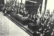 "1932-ben soha nem látott építkezés kezdődött Székesfehérváron, hogy 1938-ra Szent IStván halálának 900. évfordulóján nagyszabású ünnepséget tartsanak Székesfehérváron. Az 1938-as év meghatározó volt Székesfehérvár életében, ugyanis jelentős átalakításokon esett át a város. Páczai Pál 10-es huszárok szobra, az Országalma, a Városháza mai arculata és a Romkert is erre az évre készült el..."