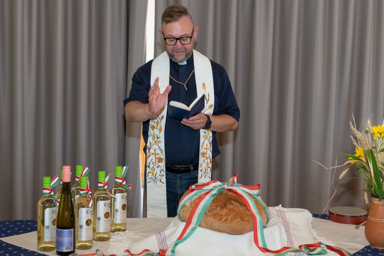 A rövid szónoklatot követően Tornyai Gábor megáldotta az új lisztből készült kenyeret. Az eseményen a nemzeti színű szalaggal átkötött, frissen sütött kenyeret ünnepélyesen Szalai Mihályné Cuni néni szegte meg, majd a Búzavilág Dalkör műsorát követően osztották szét a megjelentek között.